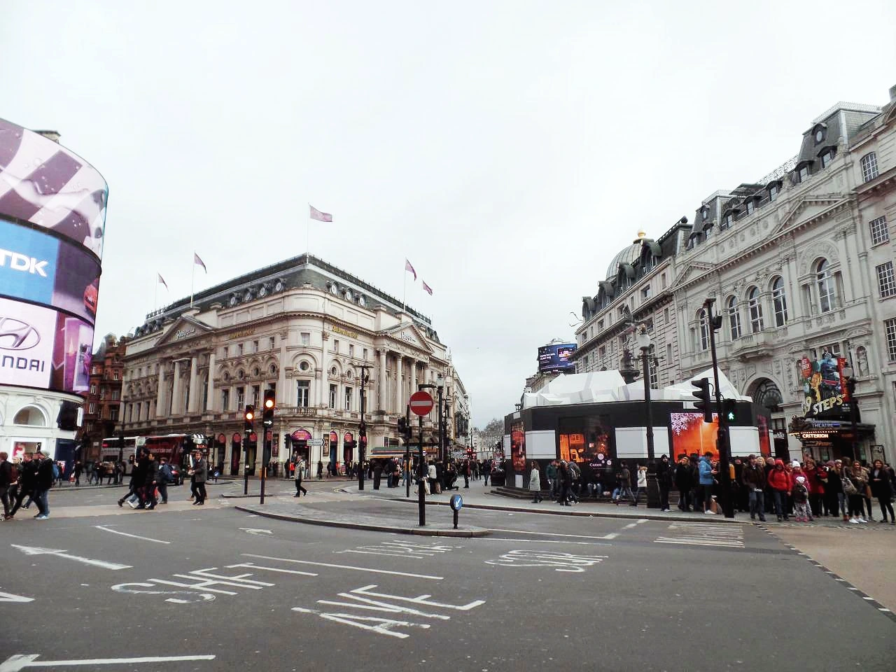 기나긴 기다림 끝에 Oyster 교통카드를 구입하고 첫 번째 행선지로 피키딜리 서커스(Piccadilly Circust) 광장으로 이동한다. 참고로 피키딜리 서커스 광장에서 여행을 시작하면 좋다. 왜냐하면 주변에 차이나 타운, 옥스퍼드 서커스, 트라팔가 광장까지 도보로 이동하기에도 괜찮을 정도로 가까이에 있기 때문이다. 지하철로 가도 되지만, 한 번도 타보지 못한 나를 위해서 2층 버스를 타고 이동했다. 운이 좋게도 2층 맨 앞에 앉을 수 있었는데, 마치 Hop-On, Hop-Off 관광버스를 타는 느낌이었다. 시야가 탁 트여서 런던 거리를 그대로 느낄 수 있었다. 먼 나라 이웃나라 책에서 봤던 내용이 기억난다. 영국은 1년 365일 중에서 300일 이상이 흐리다고. 그래서 해가 뜨는 날에는 시내 곳곳에서 웃통을 벗고 선텐 하는 사람들을 쉽게 볼 수 있다고. 역시나 명성대로 흐린 날씨였다. 이렇게 300일 이상 우중충한 날씨 속에서 살아간다면, 정말 우울할 것 같다. 그래도 날씨보다는 고풍스러운 건물과 크리스마스 직후 박싱데이(Boxing Day) 풍경이 더욱 눈에 들어온다.