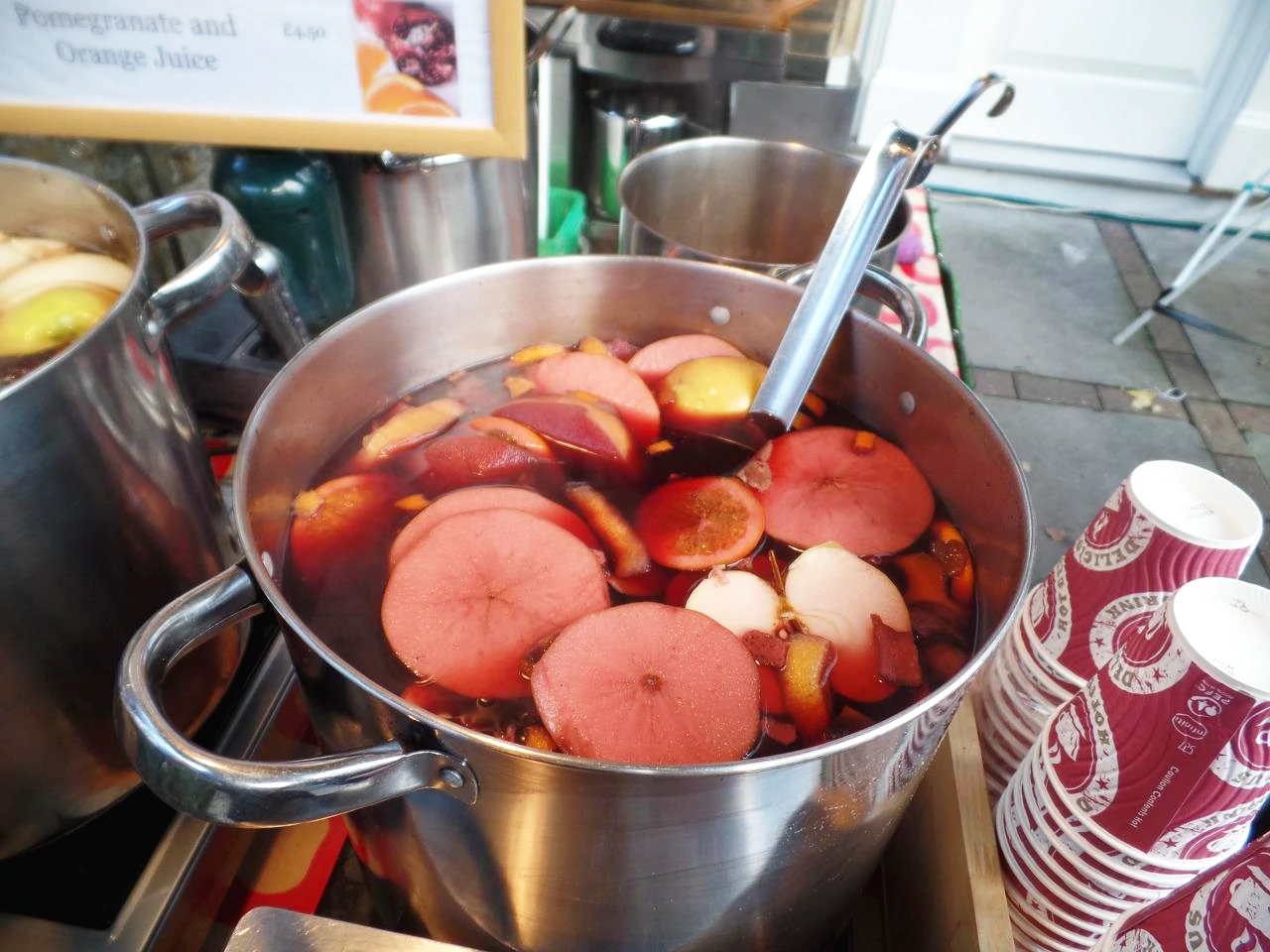 노팅힐 포토벨로 마켓에 진입했다. 이 거리에서 우연히 일정이 맞아 마주쳤던 카자흐스탄 한국인 교환학생도 있었다. 역시나 세상은 좁다. 그리고 아침이라 그런가 꽤 쌀쌀하다. 런던의 겨울은 바람이 살벌하게 불어서 살을 아리게 하는 것 같다. 그러던 중에 나를 강하게 끓어 당기는 냄새에 이끌려 그 앞으로 갔다. 바로 멀드 와인을 파는 노점이었다. 단지 와인을 데운 것일 뿐인데, 러시아 사람들이 보드카를 마시며 체온을 따뜻하게 하는 것과 같은 역할을 한다. 감기 예방과 체온 유지 효과가 있는 것이다. 이는 유럽 전역에서 즐기는 음료인데 언어별로 부르는 이름이 다르다.