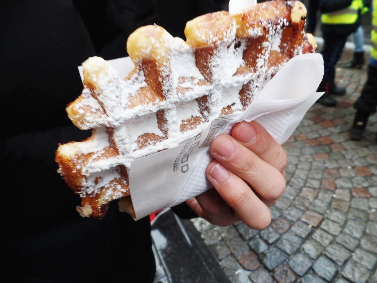 이제 1€ 와플을 한 입 물어본다. 태어나서 먹어보지 못한 천상의 와플 맛이었다. 내가 먹어본 와플이란 학교 통학하면서 노량진 노점상에서 먹은 1,000원짜리 애플잼이 발린 와플, 그리고 축제 때 동아리 소속으로 내가 만들어서 팔았던 와플뿐이었다. 한국 카페에서는 '벨기에 式 와플'이라면서 와플 하나에 7천 원 이상 팔았기에 절대 사 먹지 않는 메뉴였다. 정말 간혹 가다 노량진에서만 먹었을 뿐. 그마저도 불친절한 주인아주머니 때문에 얼마 되지 않아서 발걸음을 끊어버렸다. 역시 본고장에서 먹는 음식은 뭐가 달라도 많이 다른가보다. 딱히 어떤 부분이 한국에서 먹는 와플보다 낫다고 정확하게 짚어서 말할 수는 없다. 그냥 특별했다. 추워서 혹은 엄청 굶주려서 그런 것도 아니었다. 그냥 천상의 맛, 그 자체였다. 오줌싸개 동상을 보고 지려버린 가슴을 닦아주는 포근한 엄마품과 가은 맛이랄까? 이 맛을 보고 하나만 먹고 넘기기에 아쉬워서 이번엔 과일과 크림 토핑이 올라간 와플을 주문해본다.