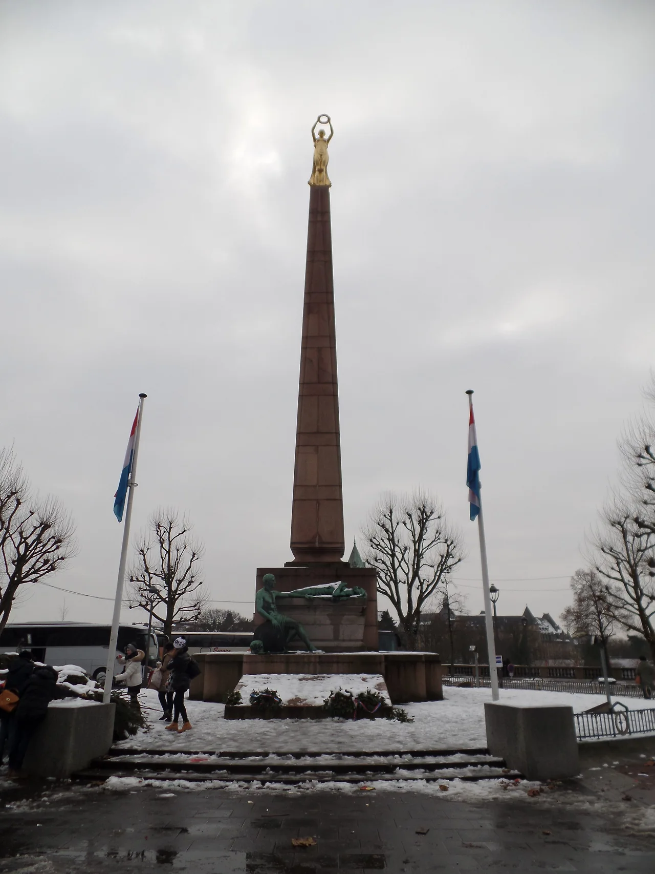 맛있게 점심 식사를 하고서 시작한 오늘의 여정, 노트르담 성당을 지나 오늘의 하이라이트라고 생각하는 룩셈부르크의 랜드마크 아돌프 다리를 향해 걷기 시작했다. 이번 챕터의 첫 번째 목적지는 '헌법 광장'. 광장 자체는 조그마했지만, 이곳에는 '황금의 여신상(Monument du Souvenir)' 하나가 우뚝 서있다. 전쟁에서 죽은 이들을 위해서 건설된 동상이라고 한다. 유럽여행을 하다 보면 어떤 나라든지 중심가 곳곳에 이렇게 전쟁에서 죽은 이들을 위한 기념탑이 세워져 있는 것을 쉽게 목격할 수 있다. 하지만 이렇게 유럽 대륙에서 흔한 추모비를 우리나라에서 찾기 힘든 이유는 무엇일까? 문득 그런 생각이 들었다. 나는 단재 신채호 선생의 '역사를 잊은 민족에게는 미래는 없다'란 말을 항상 되새기며 살아가고 있는데, 이런 점에서 아쉬움을 느꼈다.
