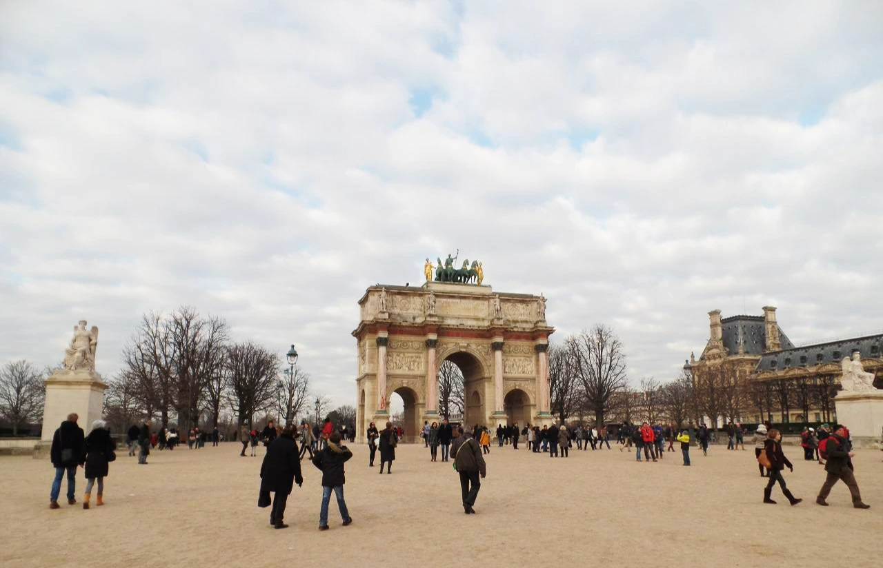그렇게 이날 '걸어서 파리 속으로' 여행의 반환점 개선문에 도달했다. 이미 개선문을 배경으로 사진을 찍으려는 수없이 많은 이방인들, 그 속에 우리도 뛰어든다. 파리(Paris)란 도시는 정말 다양한 지역에서 사람들이 관광하러 오는 것 같다. 줄을 서서 차가 지나가지 않을 때 웅성이는 소리를 듣고 있노라면, 온 세상의 모든 언어가 한 곳에서 뒤섞인듯한 느낌을 줬다. 그리고 도로 한가운데에 어찌 이렇게 관광객을 배려해서 포토존을 만들었는지, 개선문 안으로 올라가 꼭대기에서 파리 도심을 볼 수도 있다지만 나는 이걸 배경으로 찍은 이 사진이 더 마음에 든다. 파리 여행하면 떠오르는 사진이 바로 우리 4명이 개선문 앞에서 찍은 이 사진이다. 비록 에펠탑, 몽마르뜨 등에서도 많은 촬영을 했지만 왜 이곳의 사진이 가장 먼저 떠오르는 것일까? 그건 가장 파리 여행에서 행복했던 순간이기 때문이지 않을까? 흐렸던 날씨도 점점 맑아져 12월 31일의 설렘이 더욱 부풀어 오른다. 에펠탑에서는 그리고 다음 여정에서는 어떤 에피소드가 나를 기다리고 있을까? 이제 에펠탑으로 아니 사이요 궁전부터 먼저 가보자.