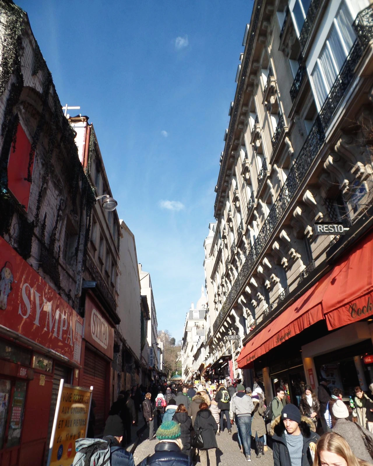 노트르담을 찍고 몽마르뜨 언덕으로 가는 길. 몽마르뜨까지는 지하철 역에서 내려 계속해 오르막 길을 올라야 한다. 언덕길이라서 그런가? 개선문, 에펠탑과 같은 다른 파리 랜드마크와는 달리 거리 폭이 상당히 좁은 편이었다. 그리고 그 길을 오르고 내리는 수없이 많은 관광객들. 문득 사진을 보니 코로나19 팬데믹 이전 관광객으로 북적이던 파리 거리가 그립다. 팬데믹 이전 올해 여름휴가는 어떤 해외여행지를 가볼까 하면서 고민했던 것이 엊그제 같은데, 지금은 그런 일상적인 고민이 저 멀리 오래된 일인 것만 같다. 아무튼 정말 파리는 어찌나 전 세계 각지에서 사람들이 몰려드는지 여기서 모든 인종을 다 만날 수 있을 정도로 느껴졌다. 왜 2차 세계대전에서 프랑스가 파리의 문화유산을 보존하기 위해 독일에게 무조건 항복을 했는지 알 수 있었다.