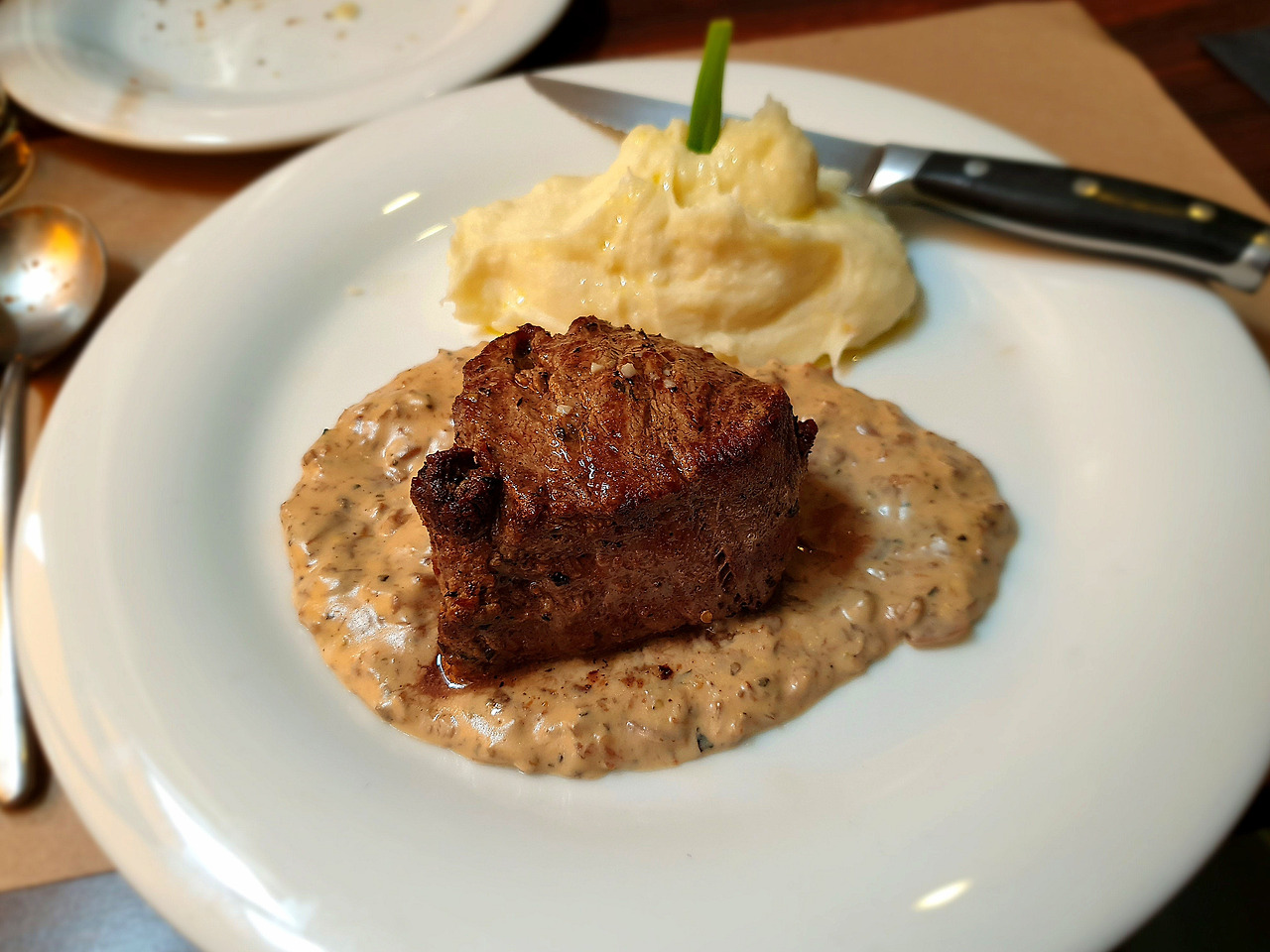 처음에 메뉴판에서 스테이크(Steak)란 단어를 찾았는데, 알고보니 살코기를 의미하는 필렛(Fillet)으로 명기되어 있어 찾는데 시간이 조금 걸렸다. 아무래도 익숙지 않은 단어다. 익힘 정도는 역시 나는 미디움 레어(Medium Rare)가 제일 좋다. 안에 조금 덜 익은 붉은 고기 때문에 온전히 고기의 맛을 더 잘 느낄 수 있기 때문이다.