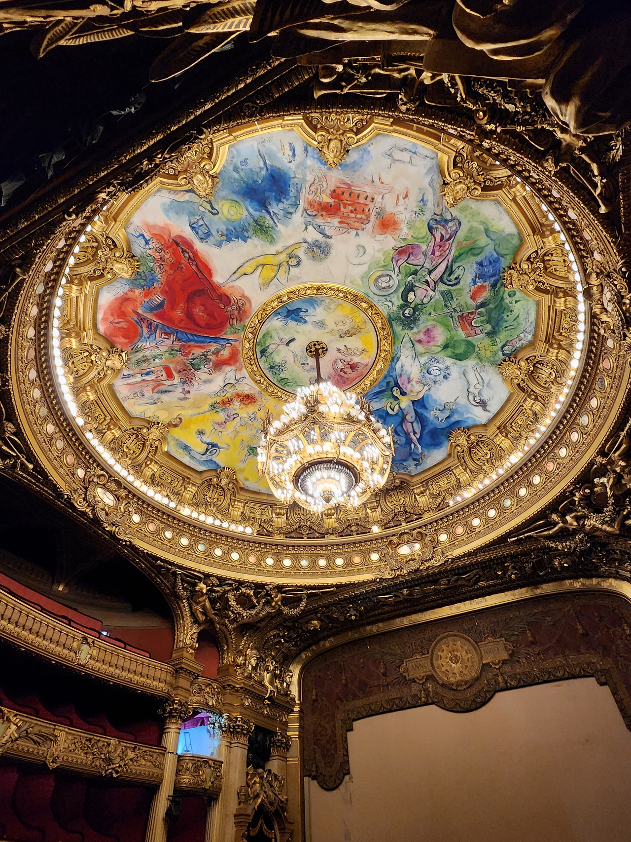 기어코 찾아낸 마지막 하이라이트, 샤갈의 천장 벽화가 있는 오페라 극장. 실제로 오페라 공연을 하는 공간이라 공연이 있는 당일에는 관광객에게 오픈되지 않는다고 하던데, 어쨌든 이렇게 실물을 영접할 수 있으니 Lucky한 것이겠죠. 광각 렌즈를 사용하지 않으면 천장 그림이 한 프레임에 들어오지 않을 정도로 엄청난 크기의 천장 벽화였습니다. 그야말로 빠져들 수밖에 없었는데요. 이런 곳에서 오페라 공연을 볼 수 있는 파리지앵들이 부러워지는 순간이었습니다.
