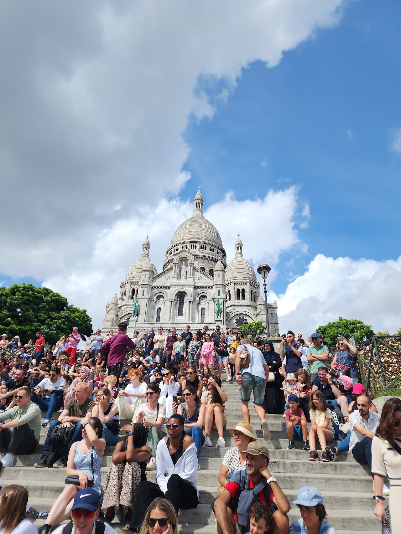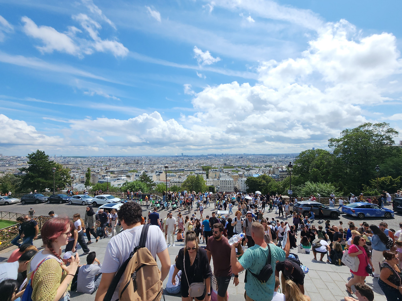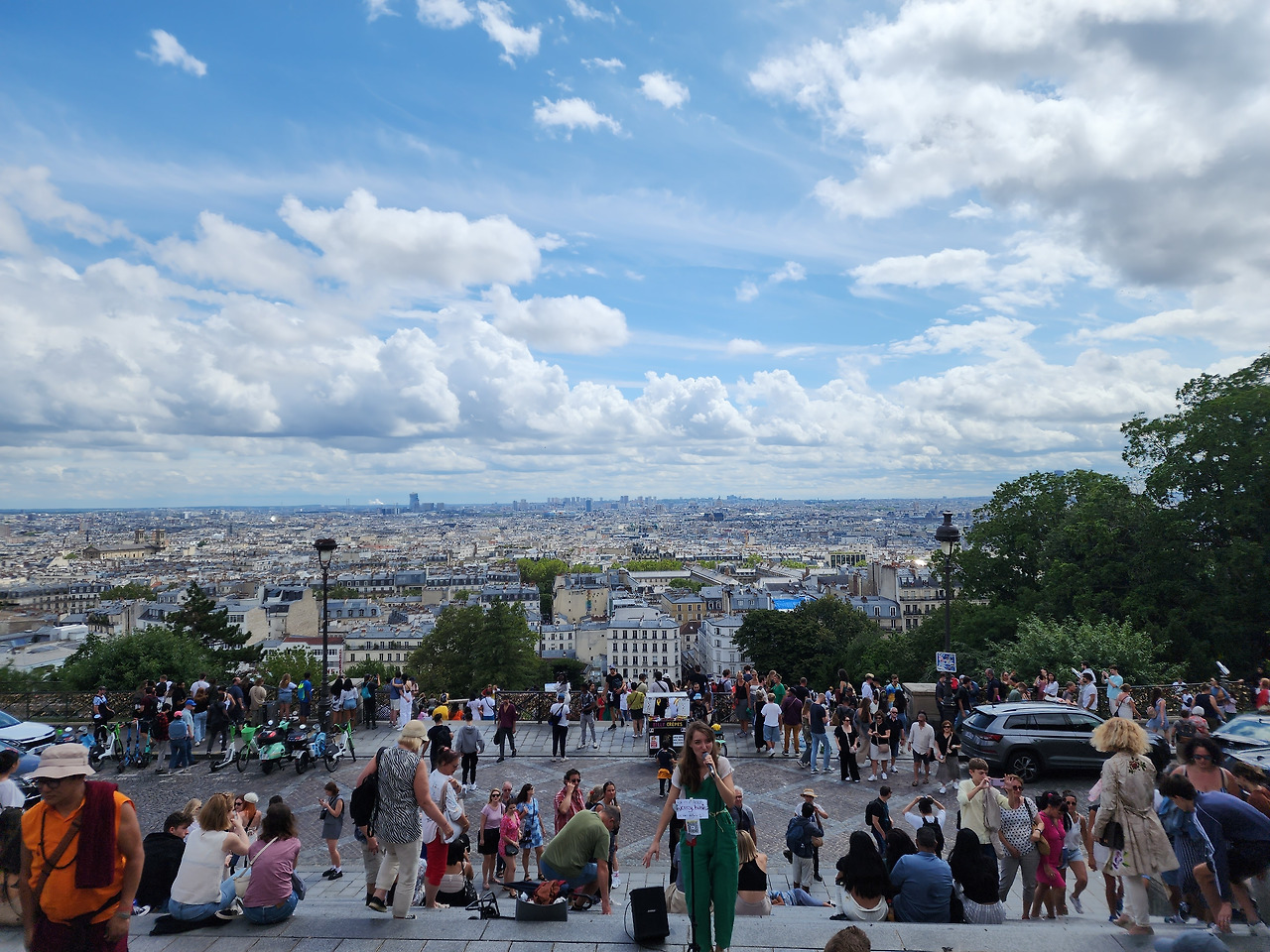 어쨌든 파리에서 가장 높은 지대인 이곳에 왔으니 프랑스 랜드마크 사크레퀘르 대성당 앞의 계단에 앉아서 햇살을 쬐며 파리 시내를 감상하지 않을 수가 없었다.