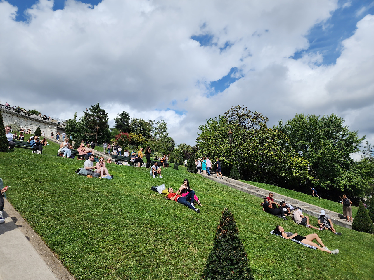 에펠탑이 있는 마르스 광장과 더불어 파리지앵을 꿈꾸는 여행객들이 피크닉 장소로 가장 선호하는 곳이 사크레퀘르 대성당에서 내려오는 계단 옆에 있는 잔디밭이다. 역시나 날이 좋으니 그냥 돗자리나 타월을 깔고 누워 일광욕을 즐기는 파리시민과 여행객들이 많았다.