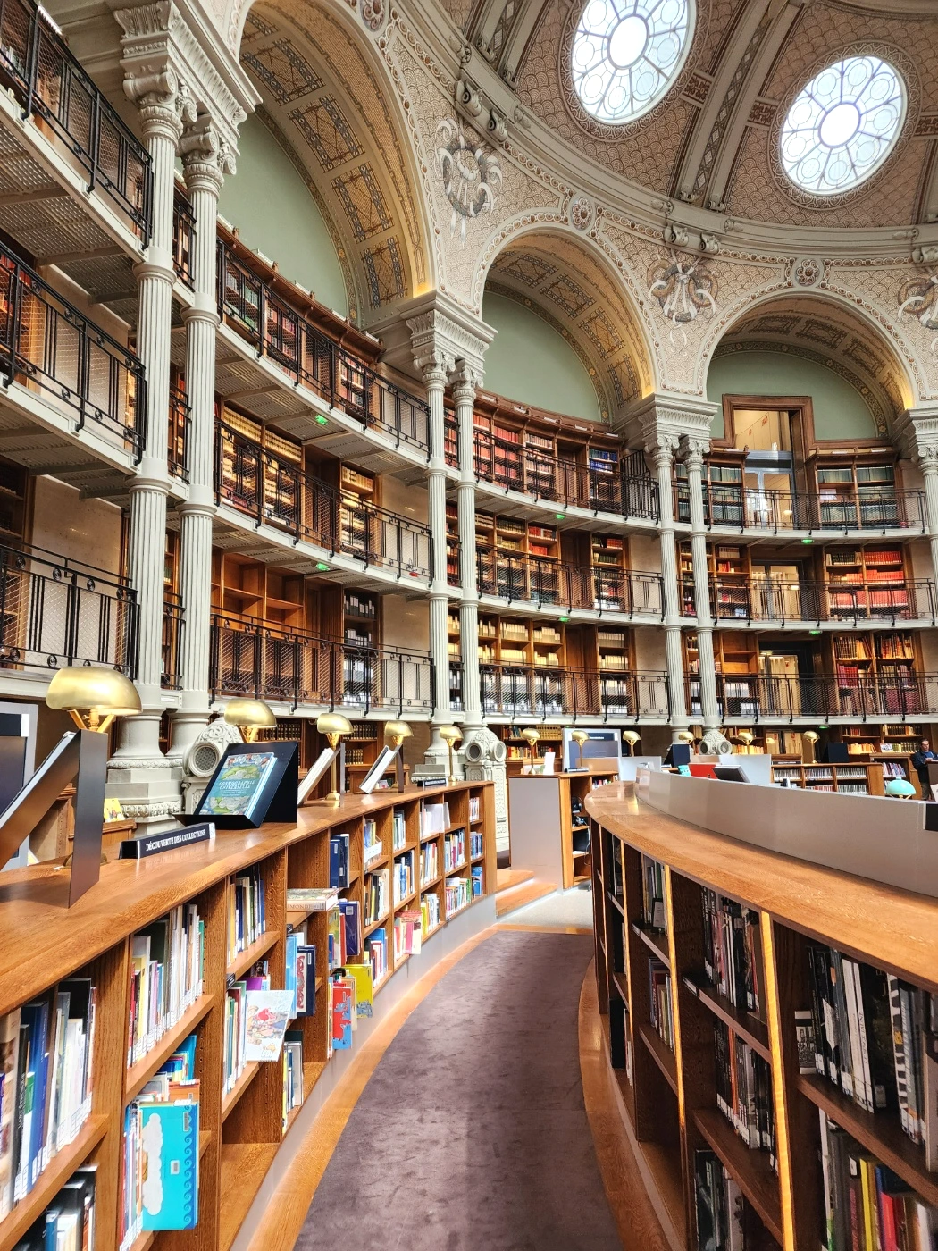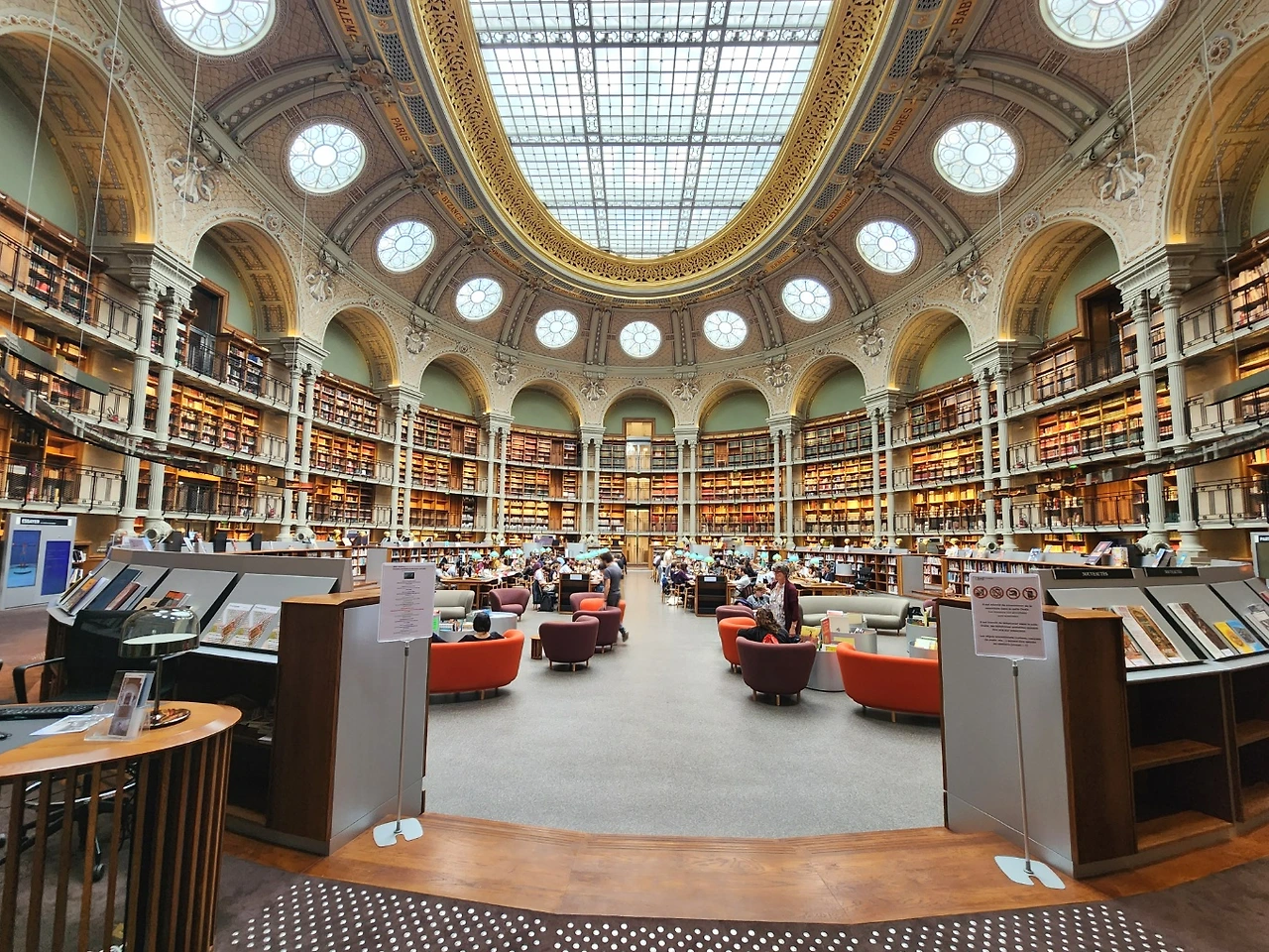 이곳의 가장 큰 특징은 타원형 공간의 열람실로써 천장의 창문으로 채광이 들어와 고급스러움과 아늑함을 동시에 만족하는 그런 구조라고 할 수 있겠다. 여느 도서관처럼 책상에 앉아 공부하고 있는 사람들. 파리 시민이 아닐지라도 무료로 개방되어 들어갈 수 있다는 게 얼마나 행운이었는지 모르겠다.