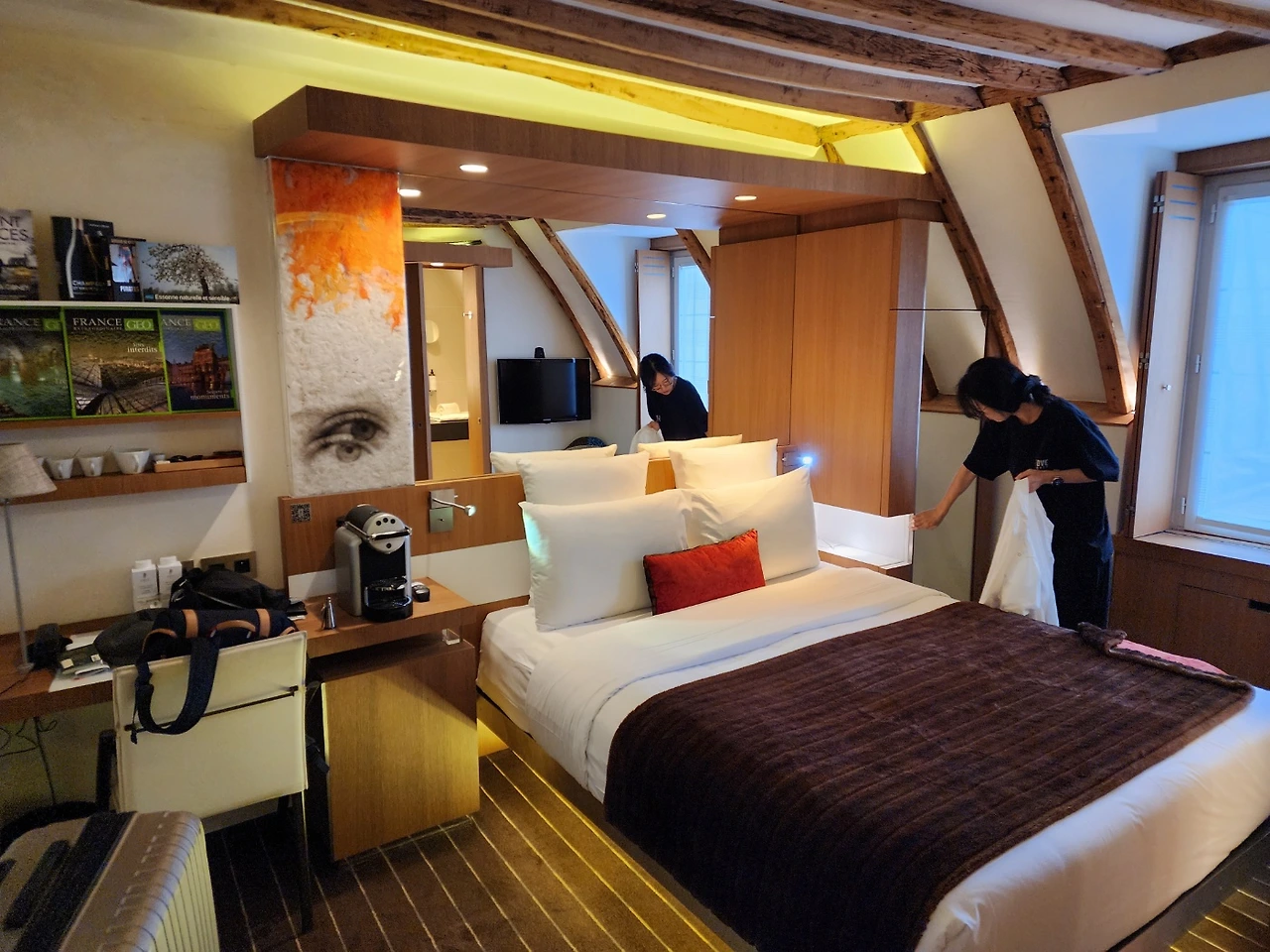 하루 평균 약 25만 원을 지불하고 숙박했던 4성급 파리 숙소 셀렉트 호텔과 트리아농리브고슈 호텔. 파리 물가가 비싼 거는 알고 있었지만, 캐리어 하나를 펼치면 꽉 차는 객실 크기가 당황스러웠던 기억이 떠오른다. 좁디좁은 엘리베이터부터 불편한 점이 한두 가지가 아니었는데, 그래도 익숙해졌던 걸 보면 사람은 적응의 동물이 맞다.