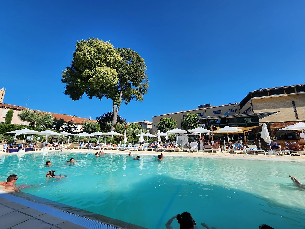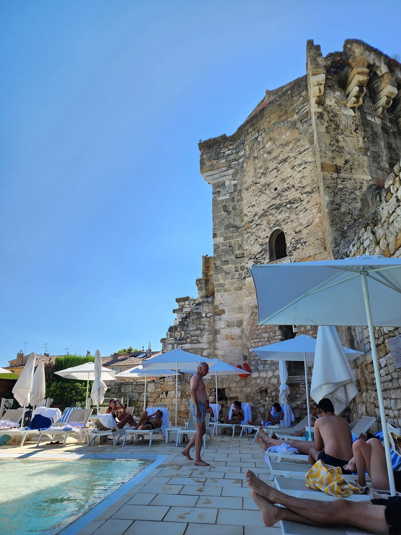 고대 로마시대 성곽처럼 보이는 건축물 아래 야외 수영장은 낭만 그 자체였다. 물에서 노는 것도 좋았지만, 1시간 넘게 수영장 안에서 키스를 하고 있던 현지 중년 커플을 봤던 일, 은퇴 이후 이런 곳에서 바캉스를 즐기고 있는 프랑스 현지 노인들을 봤던 일 등 그야말로 여유가 넘쳤던 야외 수영장이었다.
