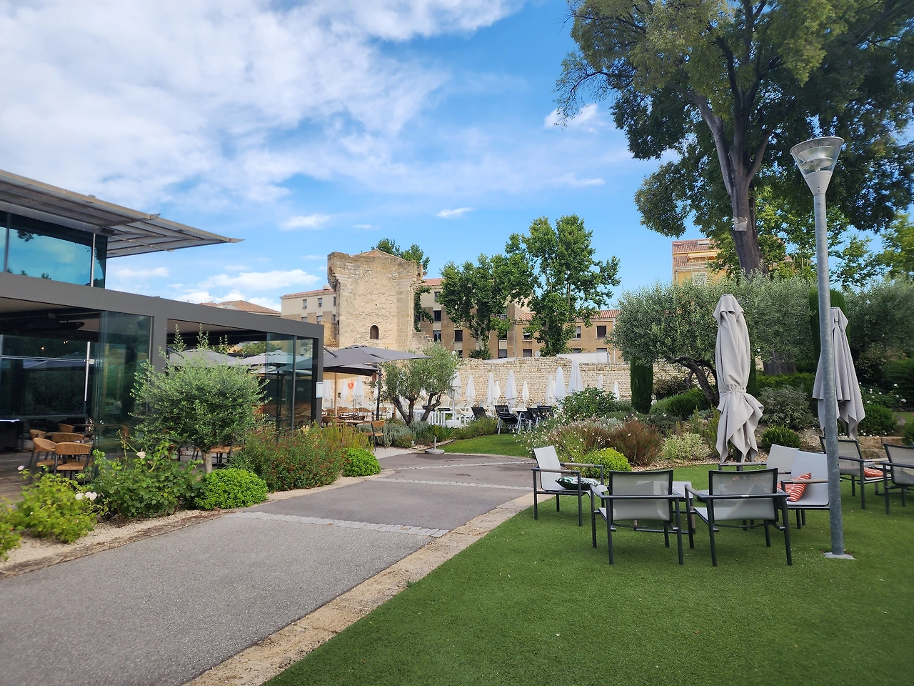 마치 고대 로마시대 성곽처럼 보이는 조형물이 있는 수영장에 매료되어 우리는 여기 엑상프로방스 아쿠아벨라 & 스파 호텔(Hôtel Aquabella & Spa Aix en Provence)에서 호캉스를 하기로 했다. 아니, 어쩔 수가 없었다. 파리는 위치 괜찮은 4성급 숙소가 평균 25만 원 정도에 육박했고, 다음 행선지 니스도 여름휴가철이라 3성급 숙소가 하루 평균 30만 원에 달했다.