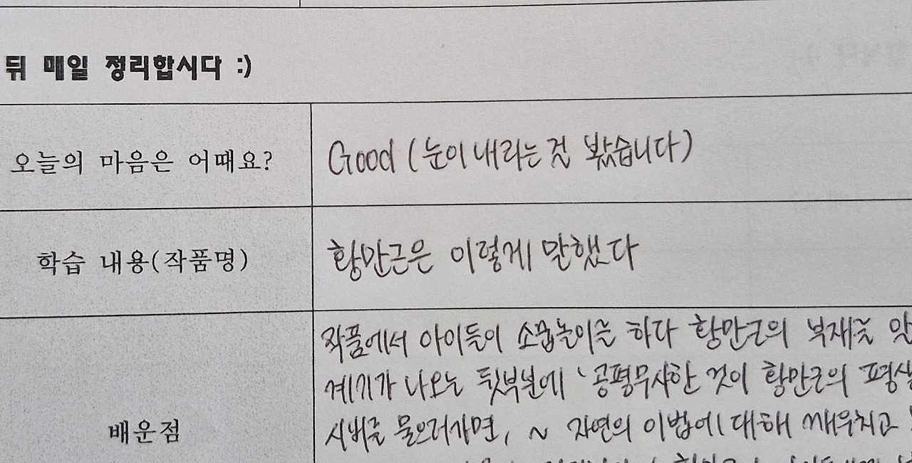 "선생님ㅠㅠ 눈 맞으면서 황만근이 왜 안 씻는지 고민해볼게요ㅠㅠㅠ"