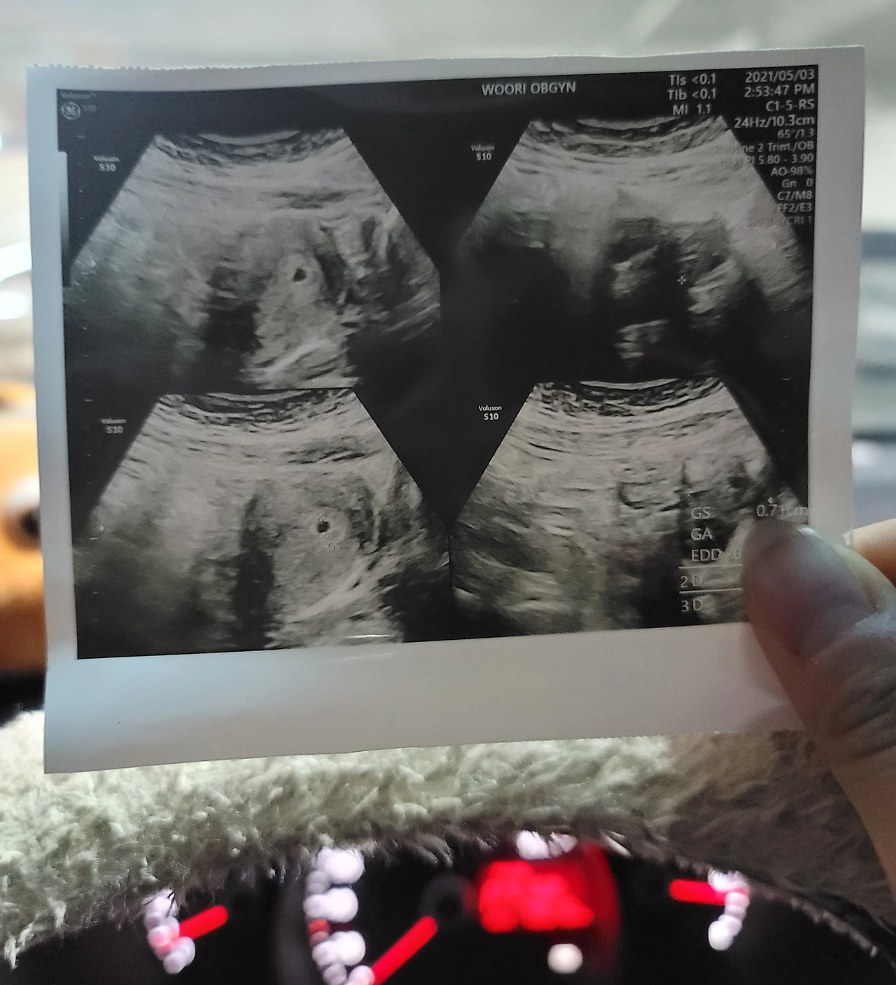 진정되기도 전에 남편에게 알려주겠다고 찍은 첫 사진