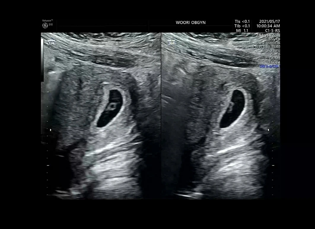 “우리 아이는 정확히 6주 차가 맞네요. 생리일수가 너무 늦어져서 더 된 줄 알았는데 6주입니다.