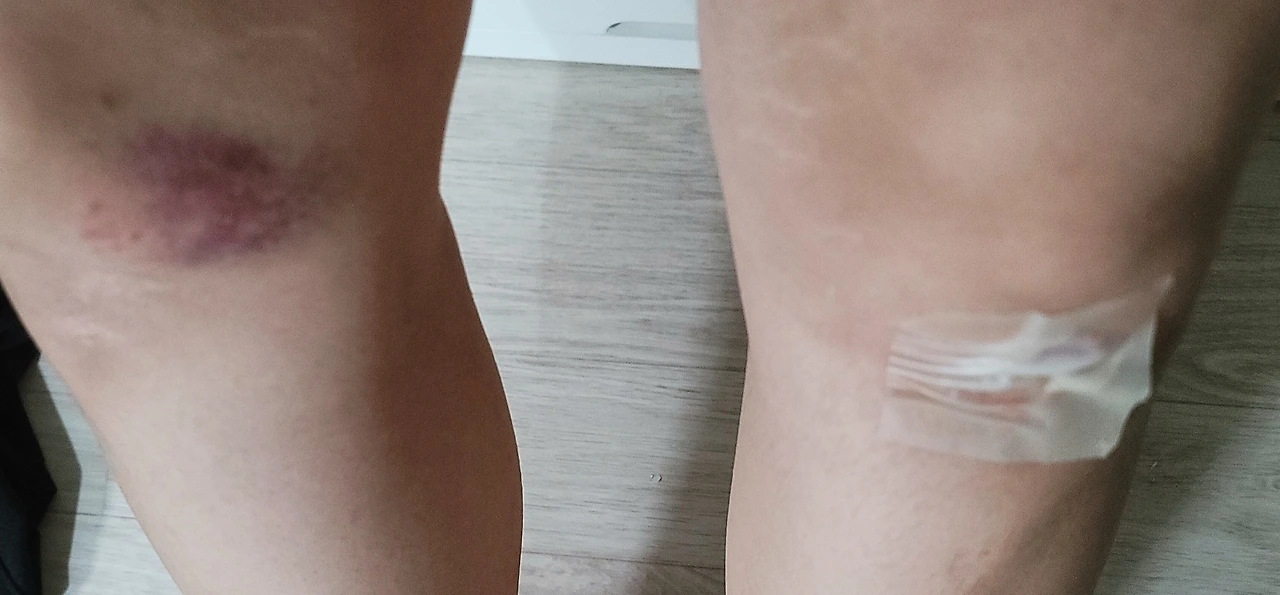 무릎 양쪽은 상처를 내고 피를 흘리고 있고 피멍이 가득 들어있었다.