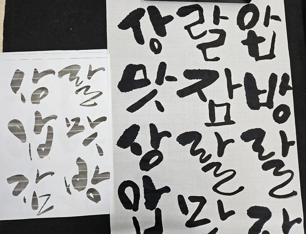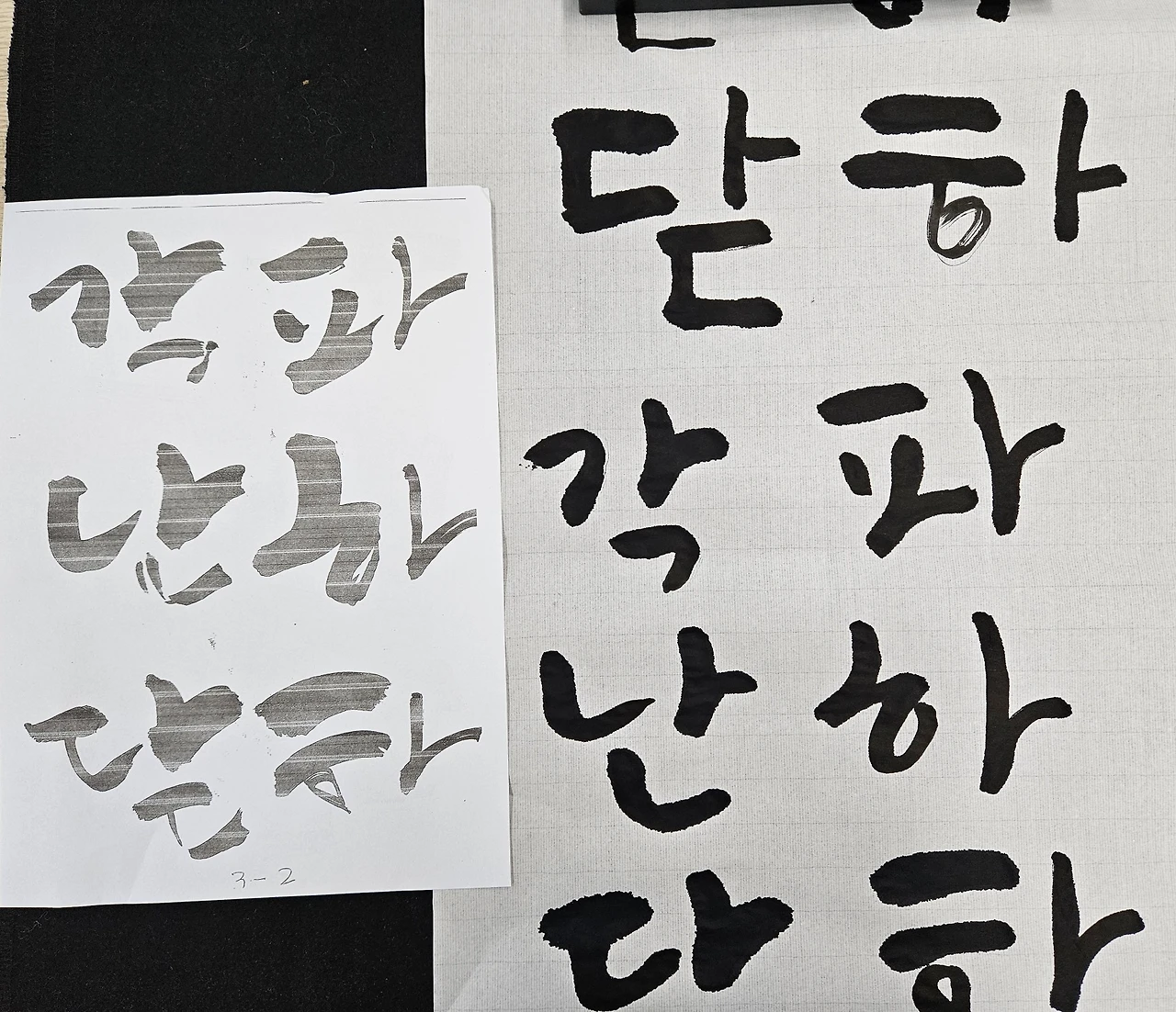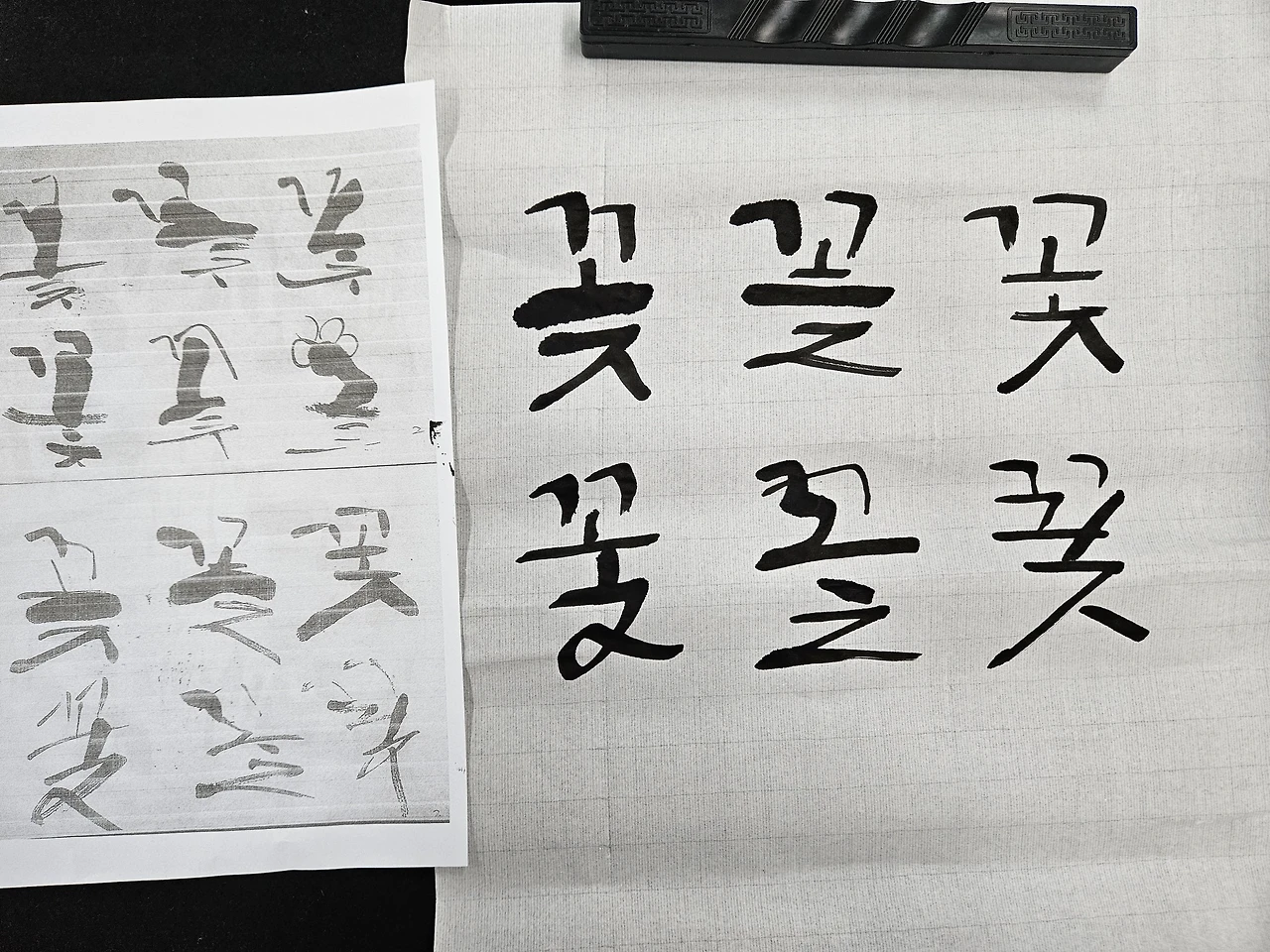 이어지는 5회 차에서는 "꽃"이라는 글자를 초성, 중성, 종성 강조로 여러 가지 버전으로 변형하여 써보는 것을 연습했다.