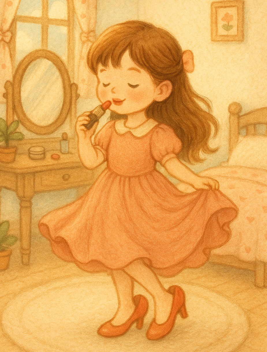 돌이켜보니, 어렸을 적 나의 모습도 첫째 아이와 비슷한 모습이 있었다. 괜히 엄마 구두를 신고 화장품을 발라보기도 하고, 엄마 화장대에서 치마를 입고는 빙글빙글 돌아보기도 하고.