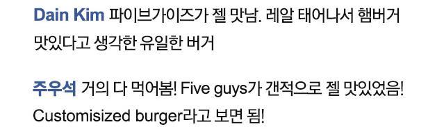 - 땅콩 기름을 사용하는 파이브가이즈답게, 피넛박스와 피넛오일박스가 따로 구비되어 있다. 기다리는 동안 공짜 땅콩으로 입가심을 해보자. 단, 너무 많이 먹으면 배불러서 햄버거 못 먹음