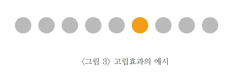 같은 물체가 여러 개 있을 때 다른 물체가 한 개 있으면 다른 한 개의 물체가 가장 기억에 남을 가능성이 높다. 고립 효과는 CTA (Call To Action) 라 불리며 클릭을 유도하는 버튼에 주로 쓰인다.