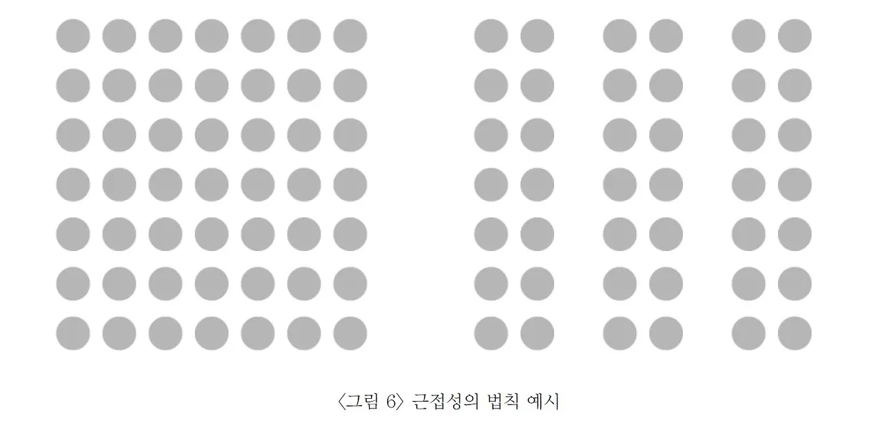 게슈탈트 이론 중 하나이며 서로 가까이 있는 물체가 그룹화 되는 것을 말한다. 인간의 뇌는 멀리 떨어져있는 물체보다 서로 가까이 있는 물체를 쉽게 연결시킨다. 이러한 클러스터링은 인간이 정리하고 그룹화 하려는 경향이 있기 때문에 발생한다.