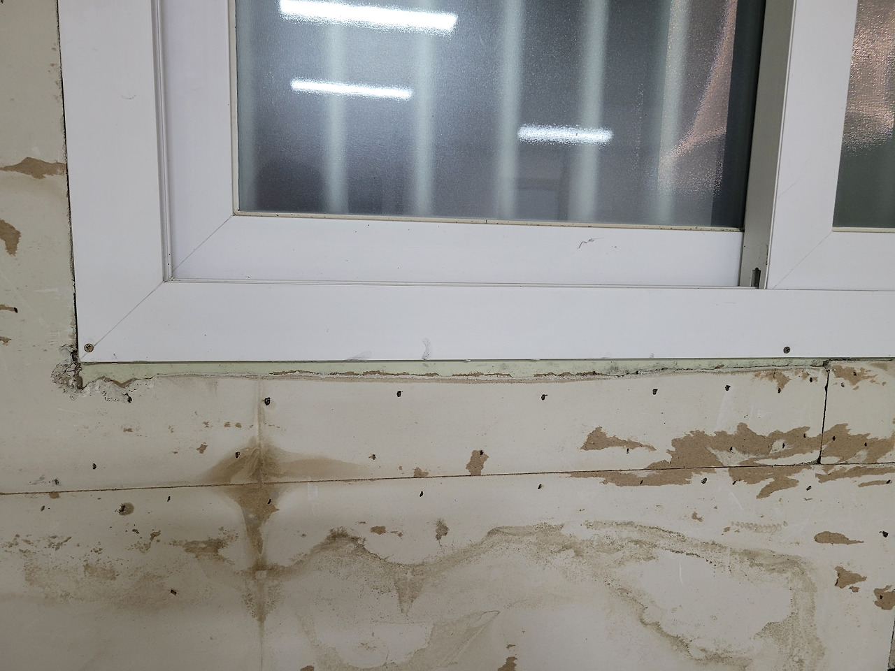 곳곳에 피어있는 곰팡이 핀 벽지를 모두 제거하니 바로 창틀에서 물이 샜는지 젖어있는 석고보드가 보였고 젖은부분을 잘라내고나니 바로 판넬이 보이는걸보니 겨울은 꽤나 추울듯합니다 ㅋㅋ...