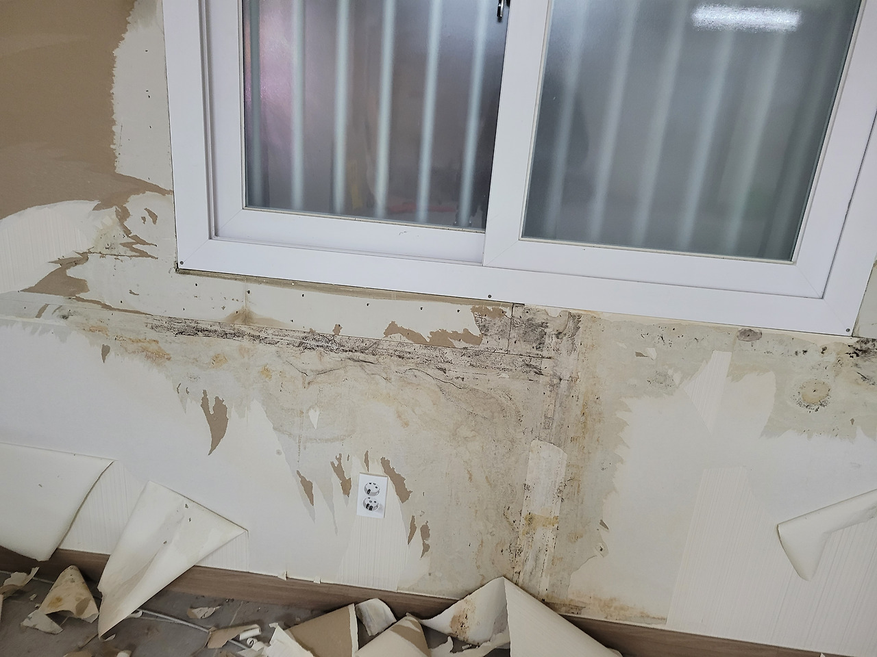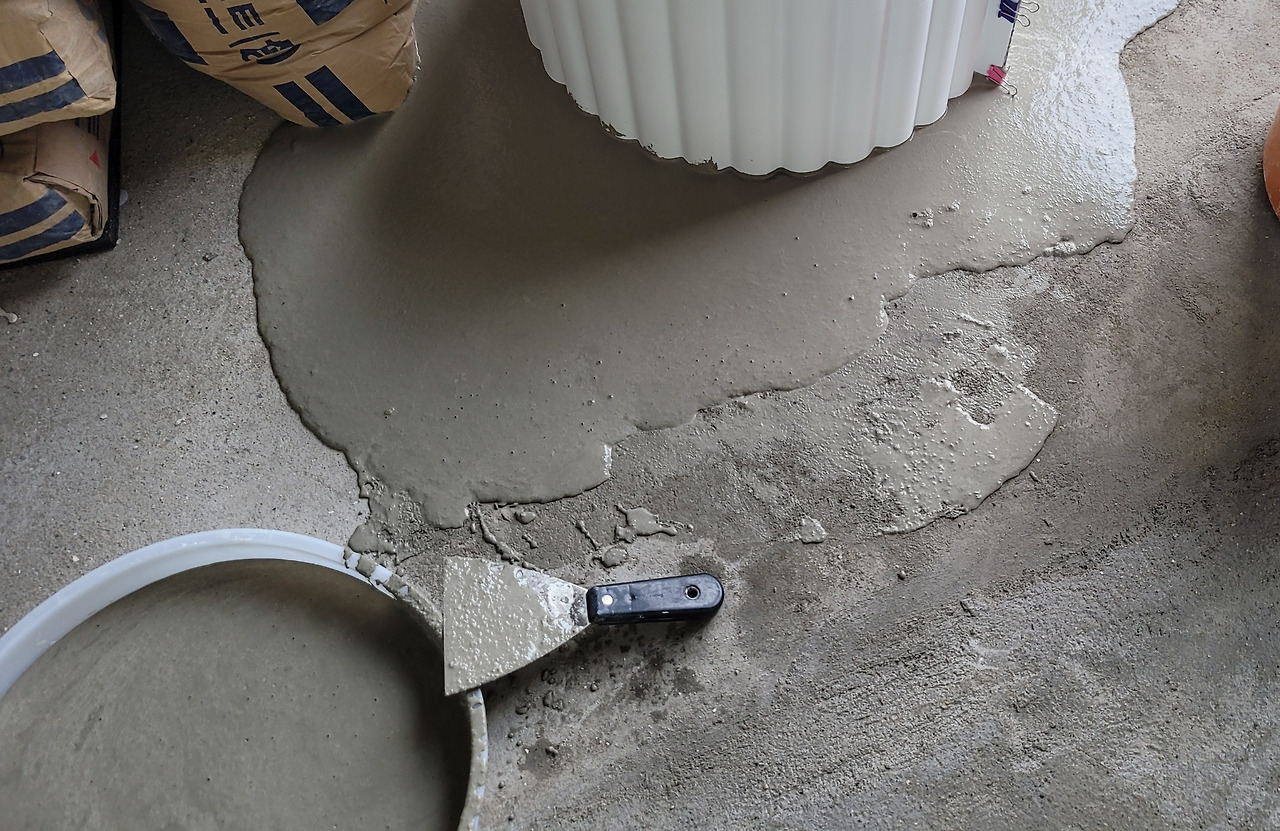 터져버린 몰드에서 삐져나온 몰탈은 바닥으로 다시 태어났습니다