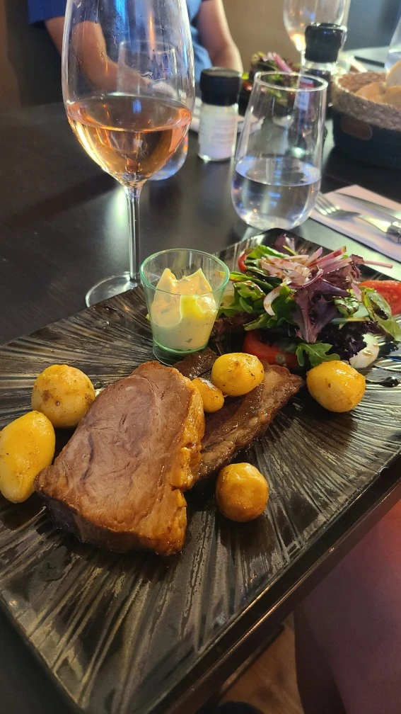 저녁은 지방 특유의 소박하면서도 정성스러운 식사였다. 감자와 고기, 신선한 샐러드, 그리고 지방 특유의 소스가 곁들여져 있었다.