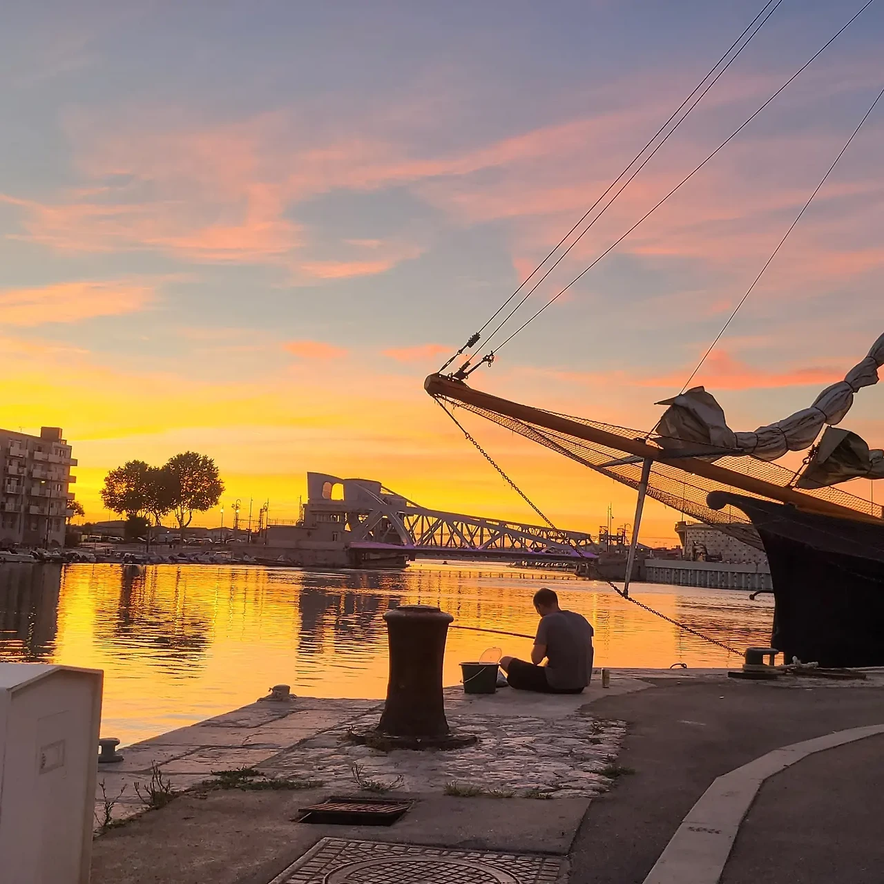 해가 기울자, 쎄트의 항구는 황금빛으로 물들었다. 수평선 너머로 붉게 타오르는 석양이 운하의 물결에 반사되어 흔들렸고, 작은 보트가 물살을 가르며 지나갔다.