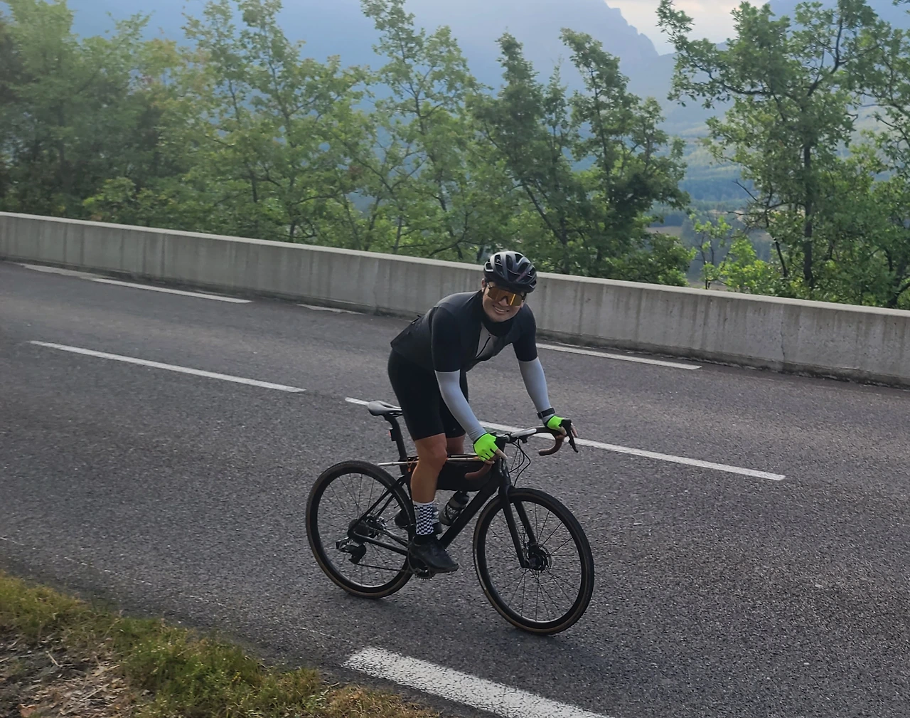 해가 떠오르기 전, 푸하를 떠난 길 위는 아직 새벽안개의 여운이 남아 있었다. 피레네 산맥의 산줄기는 점점 가까워지며 우리를 시험하듯 길게 이어졌다. 고도는 점점 높아지고, 라이더를 반기는 것은 오르막길 옆에 세워진 표지 판 뿐이었다. 1230m, 경사 페달을 밟을 때마다 다리는 무거워졌지만, 그 표지판은 또 다른 성취의 이정표였다.