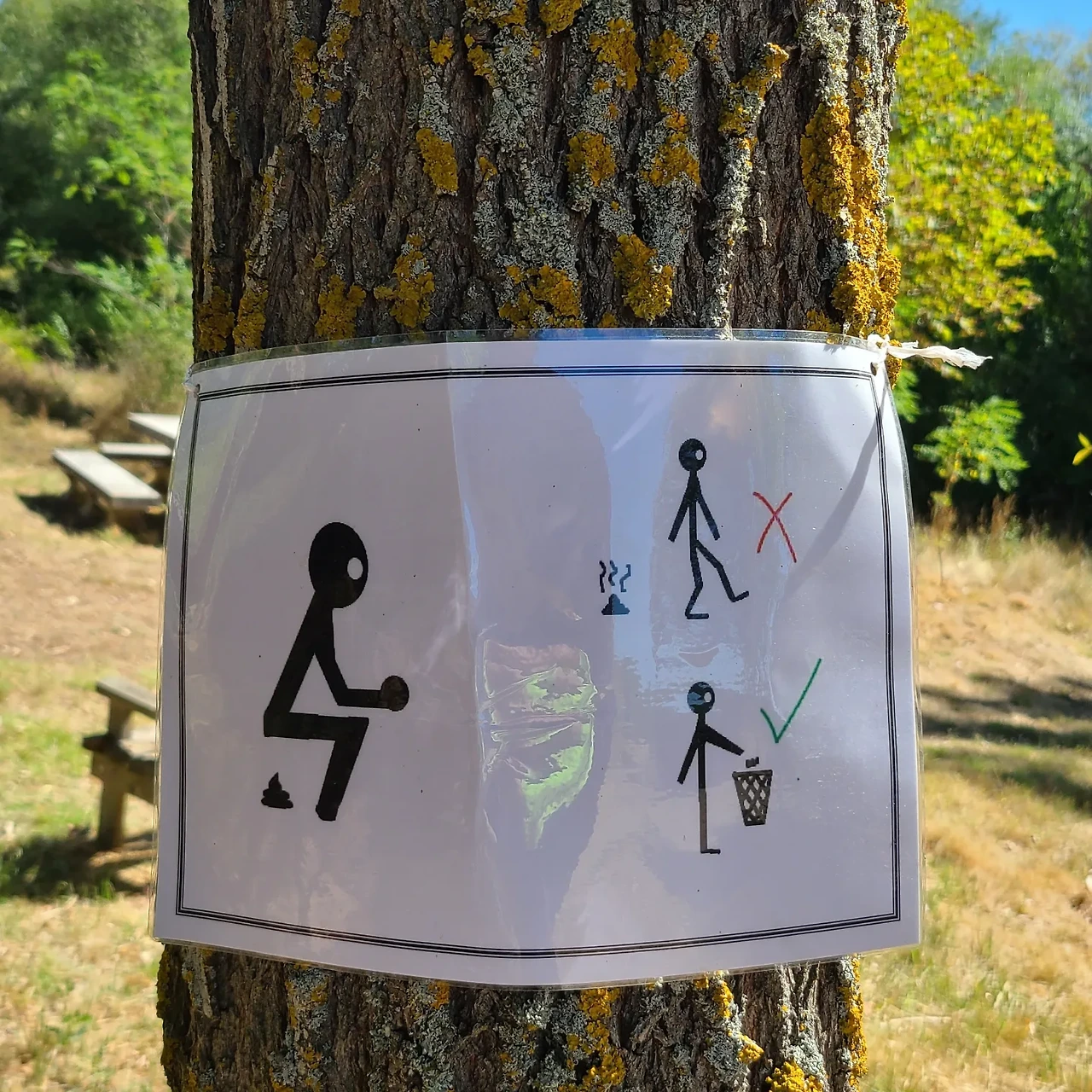 그림에는 엉거주춤 쪼그리고 앉은 사람 옆에 응아표시, 그리고 휴지통에 쓰레기를 버리는 모습 옆에 ‘✔’ 표시가 그려져 있었다.