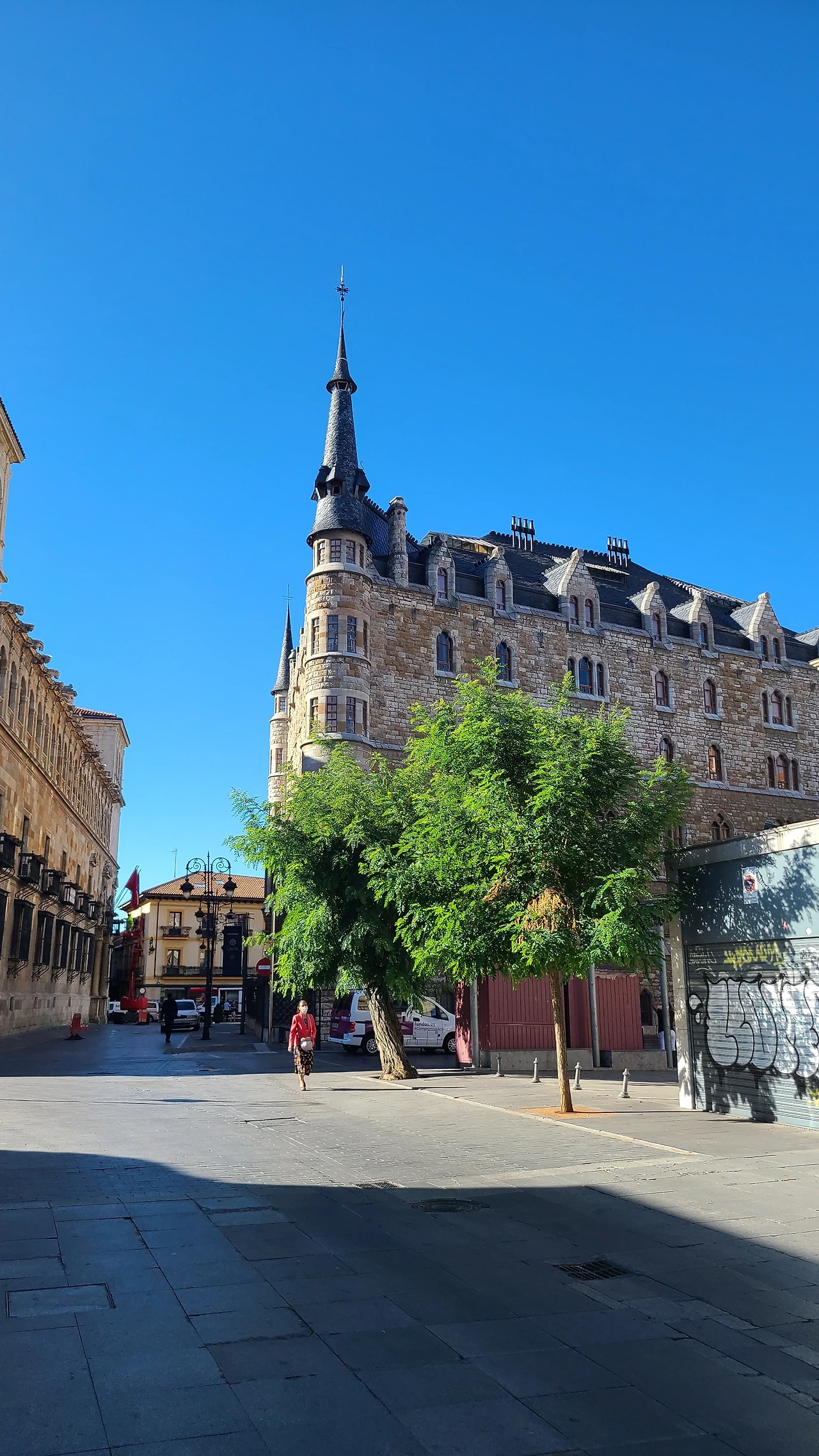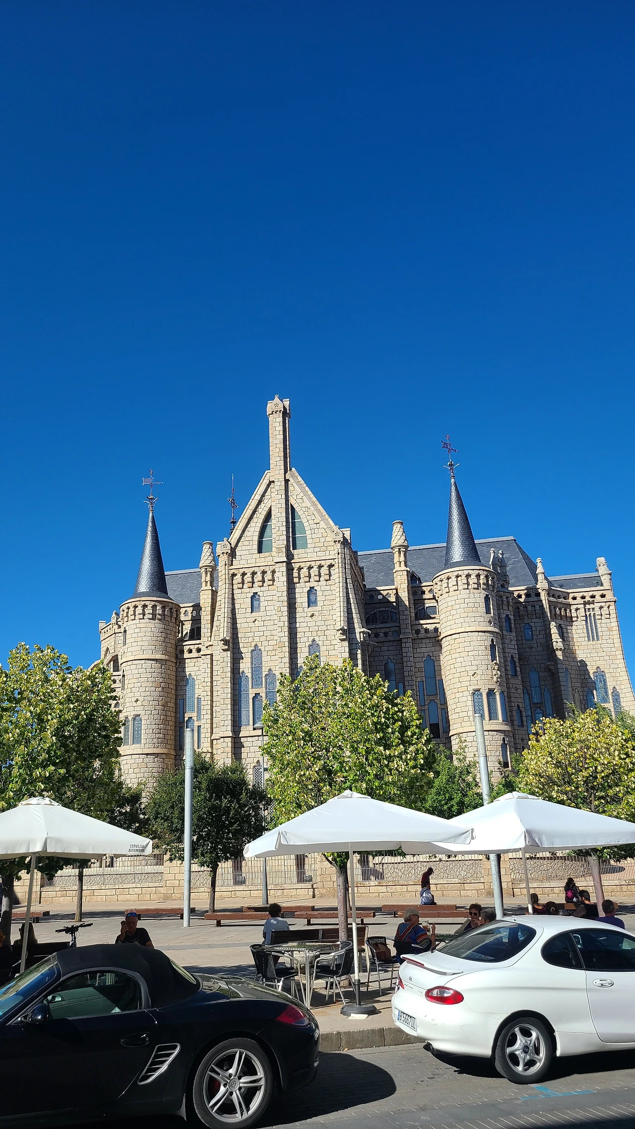 그리고 마침내 아스토르가에 도착했을 때, 멀리서도 한눈에 알아볼 수 있는 건물이 나타났다. 바로 안토니 가우디가 설계한 아스토르가 주교관(Palacio de Gaudí). 동화 속 성처럼 하늘을 향해 솟아오른 첨탑과 섬세한 곡선미는 길 위의 피로를 단숨에 사라지게 만들었다. 산티아고 순례길 한가운데 이런 건축물이 존재한다는 사실이 신기할 뿐이었다. 황톳빛 흙먼지가 묻은 신발을 신고 그 앞에 서 있는 내가 잠시나마 동화 속 주인공이 된 듯한 기분이었다.