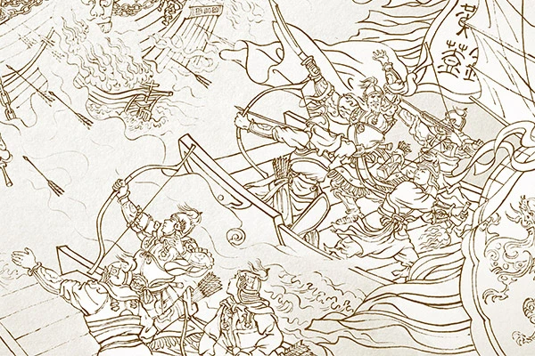 적벽대전은 역사에 기반한 전투이면서 동시에 『삼국지연의』라는 소설적 허구에 크게 의존한 이야기다. 소설은 제갈량을 지나치게 신격화해 모든 계략의 중심인물로 세우지만 실제로 적벽대전의 승리를 이끈 주역은 오나라의 주유와 노숙이었다. 유비와 손권이 연합한 것은 사실이나, 유비의 병력은 장판파의 패전으로 많아도 1만을 넘기지 못해 ‘연합’이라는 말이 무색했다. 실제 주유는 냉철하고 유능한 총사령관이었지만, 소설 속에서는 질투심 많은 인물로 축소되어 제갈량에게 번번이 밀려 결국 화병으로 죽고 만다. 적벽대전에서 조조군의 패배 역시 화공법보다는 북방군 중심의 병력이라 수전에 약했고, 오랜 전투와 전염병까지 겹친 결과였다. 황개의 ‘고육지책(苦肉之策)’은 극적 효과를 위한 장치에 가깝다. 하후돈, 하후연, 장합 같은 장수들과 사마의, 가후, 유엽, 정욱 같은 뛰어난 책사들을 거느린 조조가 패한 이유는 전략적 판단의 실패였지 하늘의 도덕적 심판을 받았기 때문이 아니었다. 냉정하게 말하면 삼국 시대의 실질적 주인공은 촉나라의 유비가 아니라 위나라의 조조였다.
