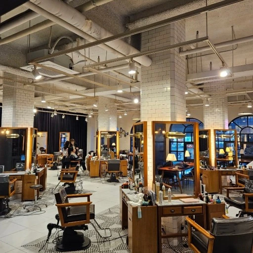 미용실로 들어서자 널찍한 공간이 펼쳐졌다. 영화 「인턴」 속 앤 해서웨이의 사무실처럼 세련된 분위기였다. 부드러운 황금빛 조명이 따뜻하게 퍼졌고, 거울마다 반사되는 은은한 불빛이 공간을 더욱 넓고 몽환적으로 만들었다. 천장에는 노출된 파이프들이 얽혀 있어 모던한 감성이 한층 돋보였고, 하얀 타일 기둥 뒤로는 우드톤의 가구들이 포근한 온기를 불어넣었다. 거울 앞, 정갈하게 정리된 미용도구들이 반짝이고 있었다. 이곳은 단순한 미용실이 아니라 변화를 꿈꾸고, 스스로를 새롭게 단장하는 작은 의식이 이루어지는 신성한 공간 같았다.