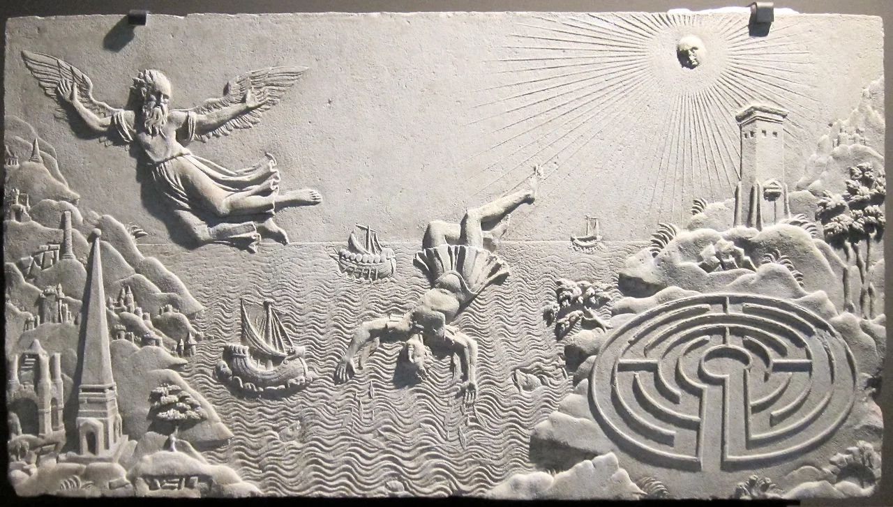소설의 끝에서 스티븐이 도움을 청하는 대상은 누구일까? ‘옛날의 장인(匠人)’이란 그리스 신화 속 ‘다이달로스(Daedalus)’다. ‘디덜러스’는 ‘다이달로스’의 영국식 발음이다. 스티븐의 절대적 의지 대상은 하나님이 아니라 자신과 동일시하는 ‘다이달로스’다. (주인공의 이름을 로마의 고대시인인 오비디우스 데덜러스에서 따온 것으로 보기도 함) 미궁은 크레타(Crete) 왕국 미노스(Minos) 왕의 명령을 받은 다이달로스에 의해 지어졌다. 미노스는 아내의 수치스러운 간통으로 태어난 자식, 미노타우로스를 가둬둘 수 있는 유일한 장소로 다이달로스에게 미궁을 짓도록 요구했다. 그런데 다이달로스는 이 미궁에서 빠져나올 수 있는 방법을 누설하게 되고 그 죄로 스스로 만든 미궁에 아들 ‘아키로스’와 함께 갇히는 신세가 되고 만다. 다이달로스는 깃털로 날개를 만들고, 밀랍으로 자신과 아들의 어깨에 그것을 달아 탈출을 시도한다. 이카로스는 안타깝게도 아버지의 주의를 잊고 너무 높이 올라갔다가, 태양에 밀랍이 녹아 그만 바다에 빠져 죽고 만다. 아들의 사체를 건져 장례를 치른 다이달로스는 시칠리아를 향해 떠난다.