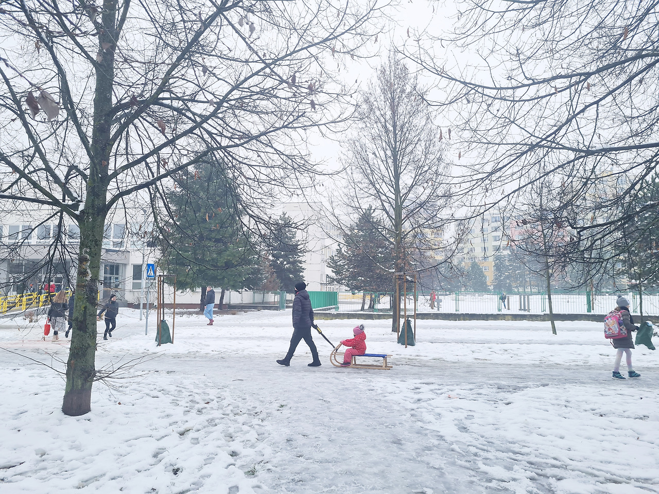 이곳은 지하 주차장이 있는 아파트가 많지 않다. 거리의 많은 차는 지붕 위에 하얀 눈을 소복이 태워서 달린다. 눈들이 가장 먼저 눈썰매를 타며, 신나게 날아다닌다. 유치원생이나 작은 아이들을 눈썰매에 태워서 다니는 사람들이 보이기 시작한다. 아이들은 예쁘게 잘 앉아 있고, 부모들은 지금의 아이들에게, 어릴 적에 경험했던 겨울의 추억을 대물림해주는 것 같다.