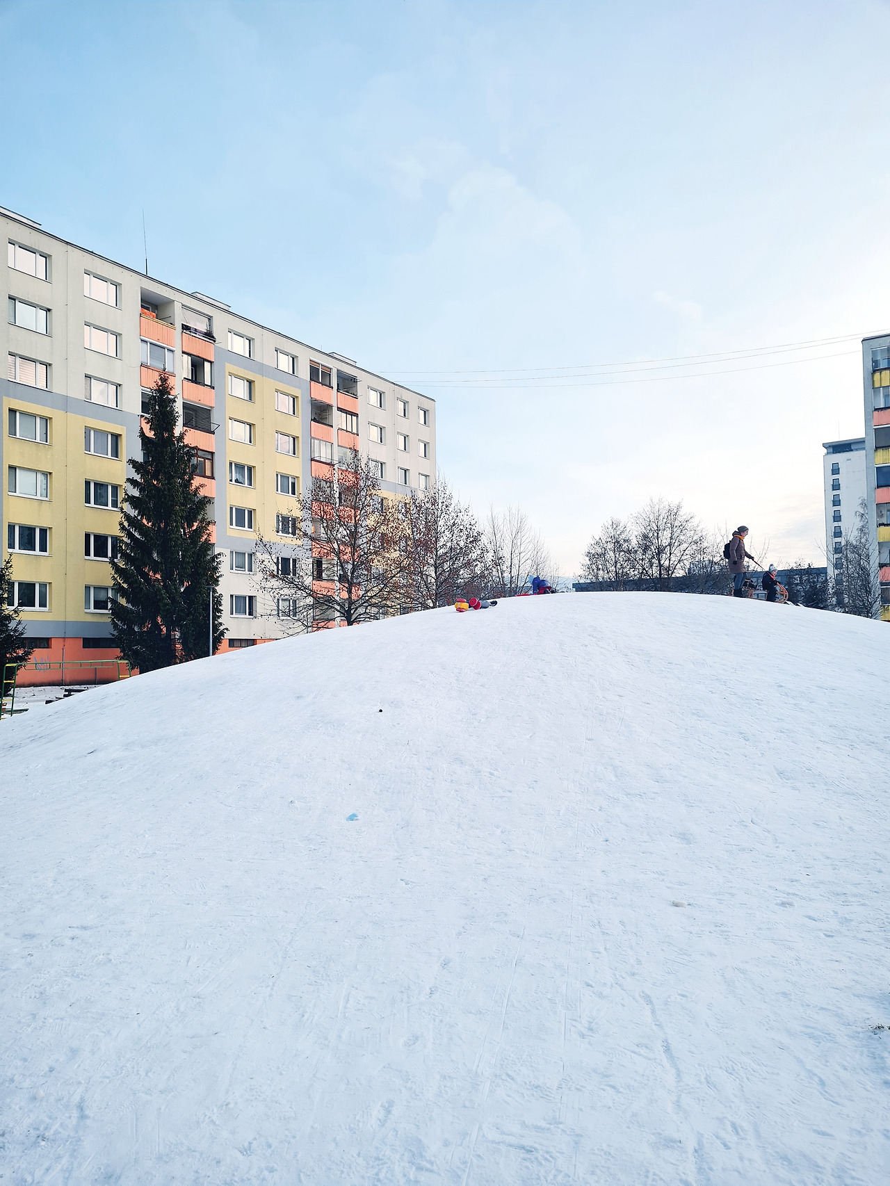 일 년 내내 마땅한 장소가 없어서, 아니 금방 겨울이 올 것 같아서, 자동차 트렁크에 눈썰매를 싣고 다녔다. 이곳의 저층 아파트 앞에는 작은 동산이 만들어져 있다. 그곳에 가면 눈썰매를 타는 동네 꼬마들이 환호를 지르며, 어느 방향에서든 내려온다. 도시 곳곳에는 눈썰매를 탈 언덕들이 너무나 많다.
