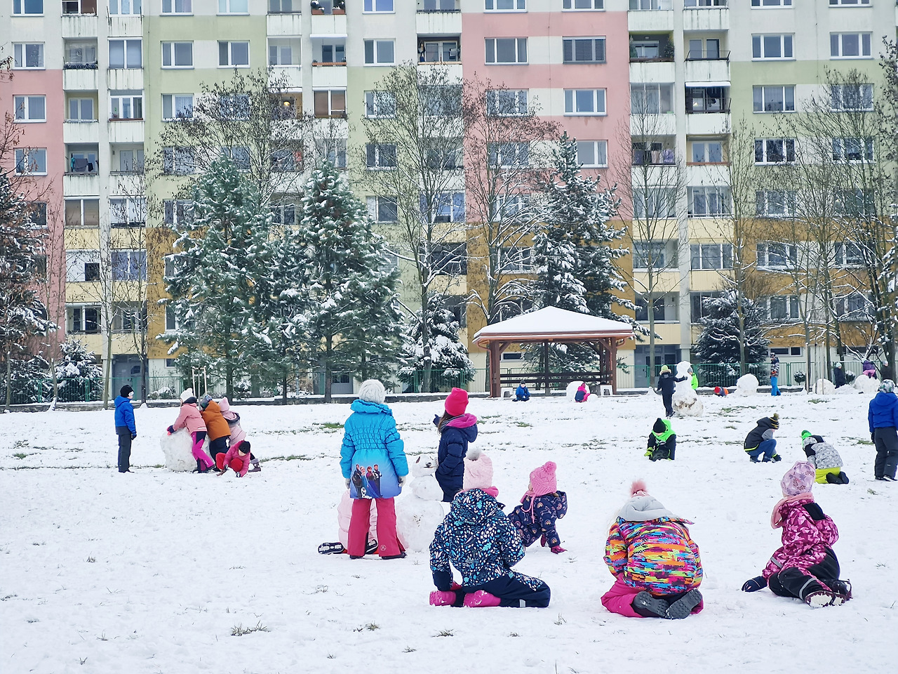 각양각색의 털모자, 방수 점퍼와 방수 바지 그리고 장갑과 부츠를 신은, 작은 모습들이 바삐 움직인다.
