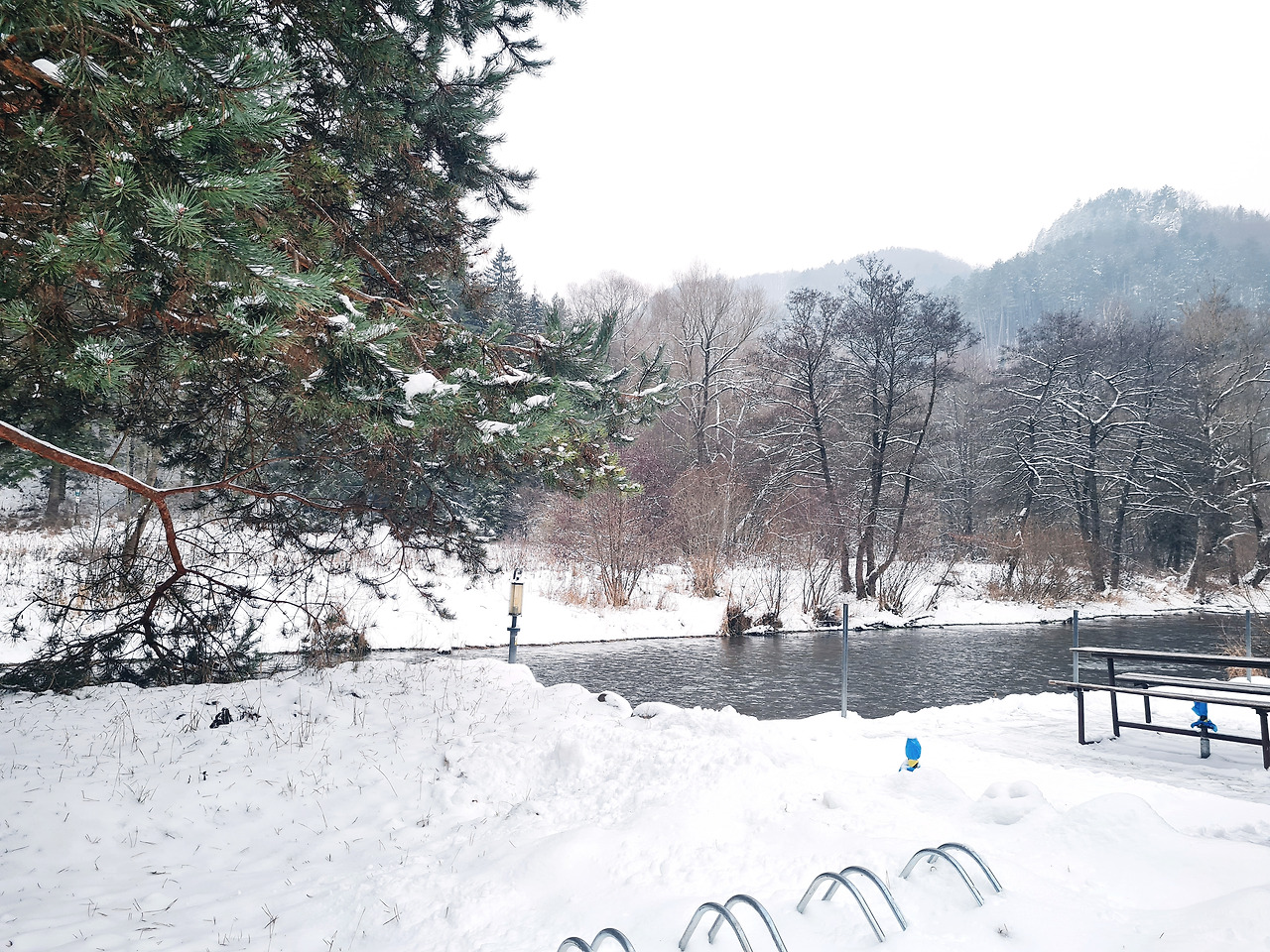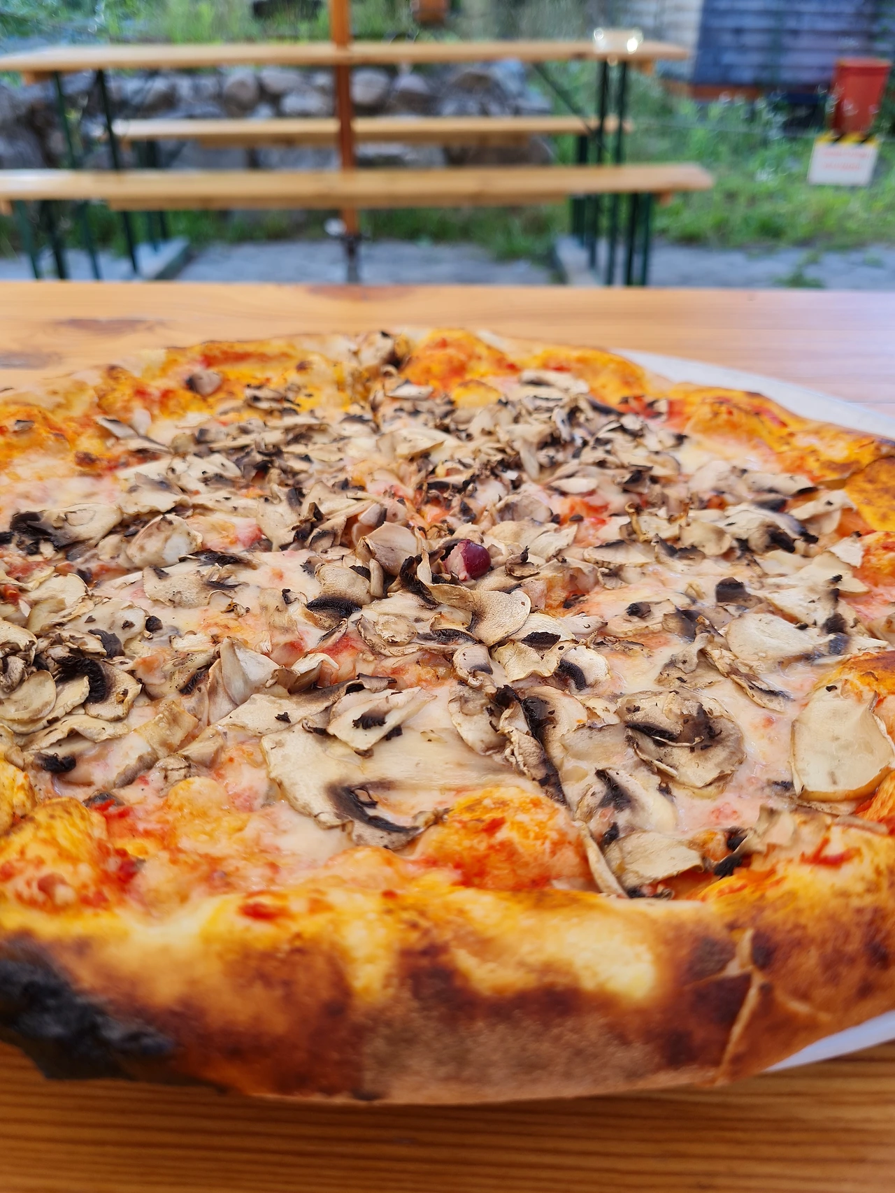 겨울에는 실내의 다소 어두운 조명 아래, 두껍고 무거운 나무 테이블에 자리 잡고 앉습니다. 장작은 가득 차 있고, 굴뚝에서는 연기가 피어오릅니다. 강물도 오리도 늘 그 자리에 있습니다. 통나무 오두막 안에서는 동그란 반죽들이 숙성되고 있고, 오직 피자만 계속해서 구워집니다.