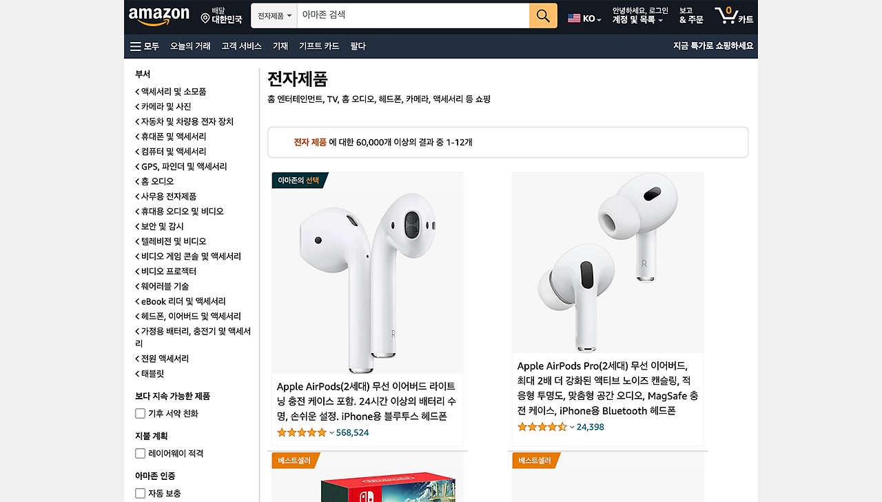 혹은 이러한 전략적인 접근이 아닌 단순하게 한국인보다 외국인들은 좀 더 텍스트적인 정보를 좀 더 중요하게 생각하는가? 라는 생각이 들기도 했다. 단적인 예시로 '아마존'을 보면 이미지보다 좀 더 텍스트에 치중하고 있음을 느낄 수 있다. (옆 이미지 참조)