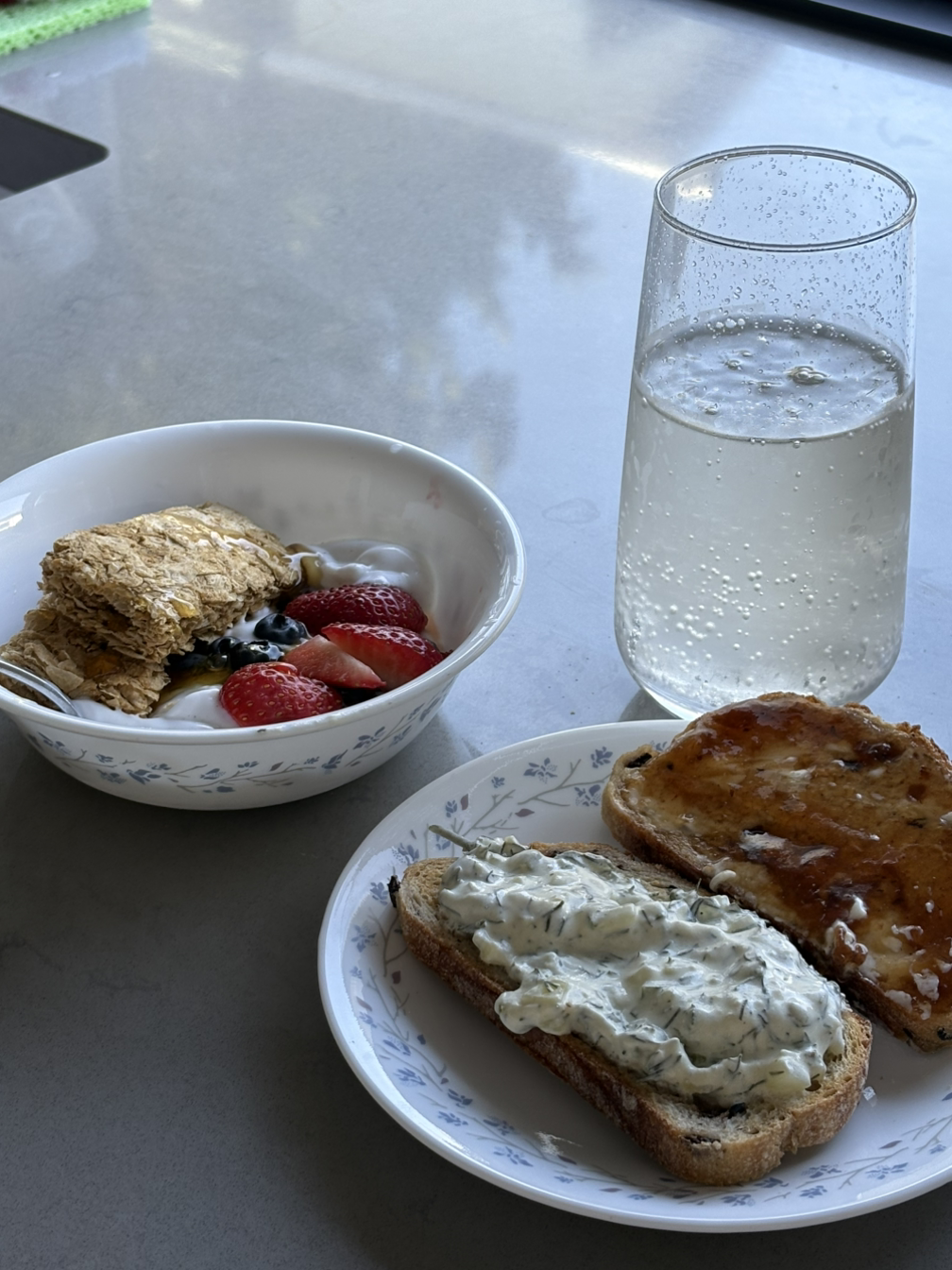 공부했으니 점심은 맛있게 먹어야지. 그릿 요거트에 블루베리와 딸기를 넣고 카필라노 꿀을 넣고, 샤워도우를 구워 온갖 유기농 스프레드를 발라 먹는다. 나는 견과류 스프레드를 참 좋아한다. 배를 채웠으니 잠깐 눈을 붙여볼까?