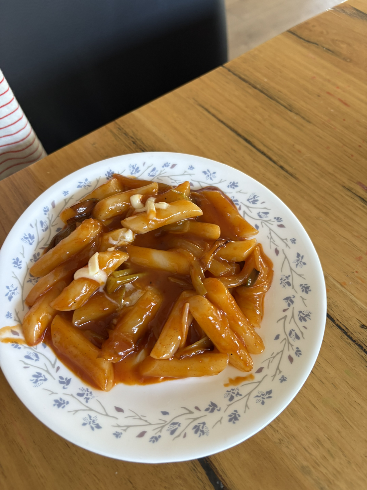 "매운 떡볶이에 설탕을 듬뿍, 치즈도 살살 뿌려서 먹고 싶어."