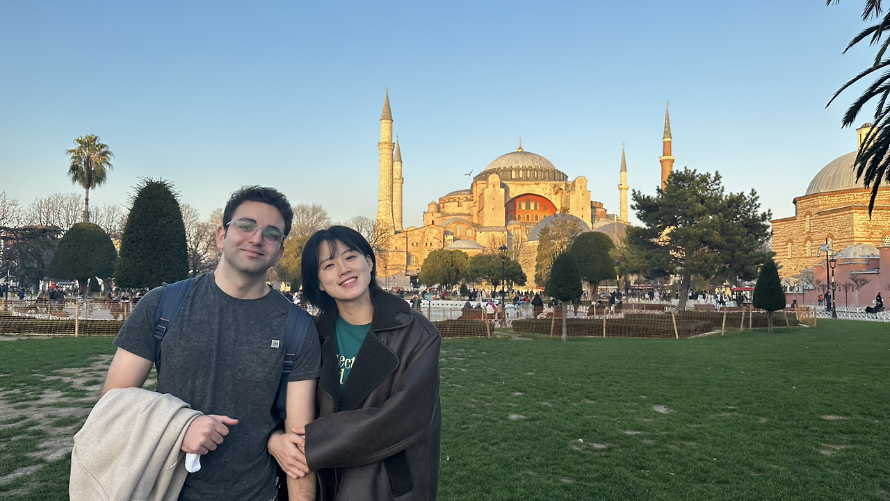 술탄아하메트와 아야소피아는 잠깐 빛나는 석양과 너무도 잘 어울려졌다. 히잡을 구매해야만 들어갈 수 있는 아야 소피아는 겉에서만 봤지만 그는 나에게 히잡을 사주기로 약속했다. 그리고 내가 한국으로 떠나기 전에 그 히잡을 쓰고 다시 방문하기로 했다. 그들의 언어를 이해하지 못 하지만 그들의 종교를 마음 깊이 이해할 수 없겠지만 그 모두를 어느 정도는 받아들일 수 있는 나였다.