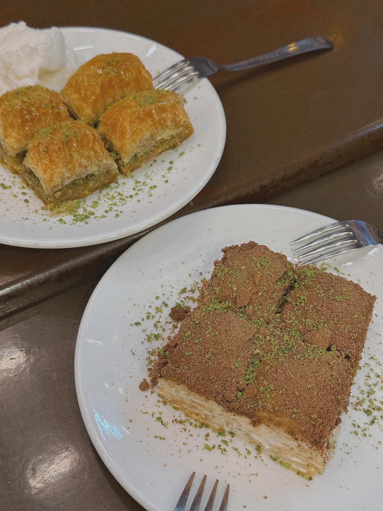 그냥 헤어지기 아쉬운듯한 그들을 위해 바클라바를 먹고 싶다고 말했고 길 건너에 있는 바클라바 가게로 향했다. 바클라바는 크로와상 같은 생지 안에 피스타치오를 넣은 터키식 디저트인데 안에 들어가는 종류가 다양해 그의 종류도 아주 다양하다. 내가 제일 먹어보고 싶은 바클라바는 카이막 바클라바였지만 이곳보다 다른 곳이 더 맛있다는 그의 말에