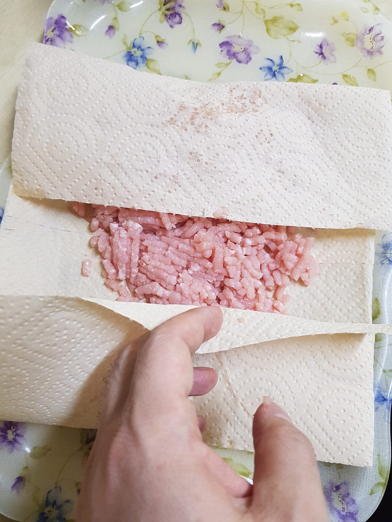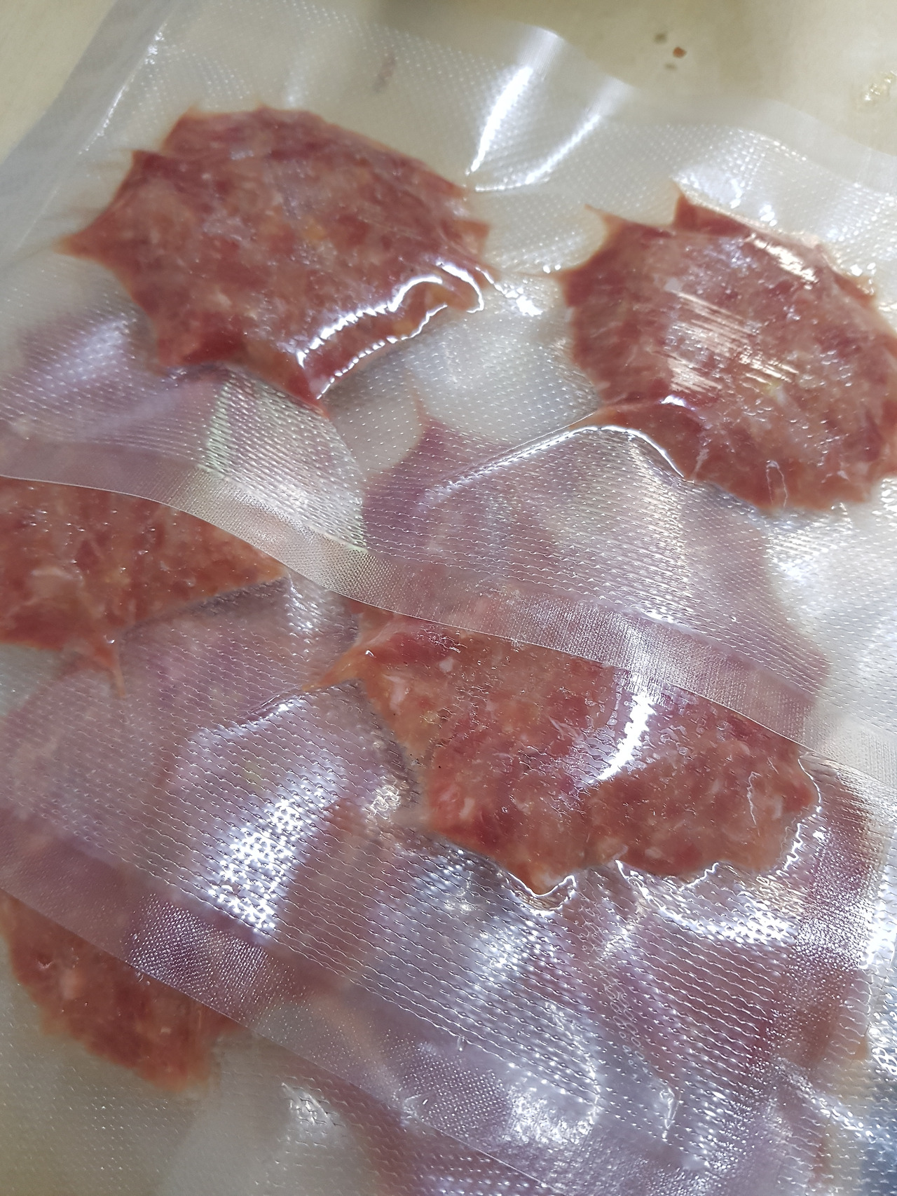 냉장실에서 꺼낸 고기를 먹기 좋게 뭉치고 소분해서 포장한 후 냉동실에 넣어두자.