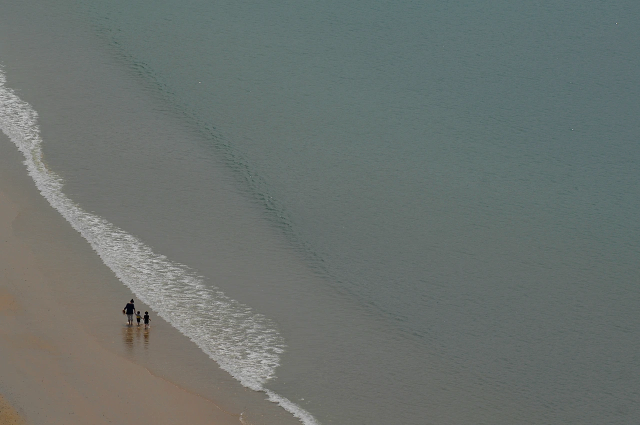 신지도의 대표 관광지인 명사십리 해수욕장을 한눈에 담을 수 있는 명사정까지 돌아보고 나면 이제 걷기도 마무리 단계에 접어든다. 임촌마을에서 울몰까지 이어지는 명사십리 해수욕장은 백사장 길이가 3km에 이를 정도로 광활하다. 규모만이 아니다. 유리알처럼 반짝거리는 모래알도 일품이다. 해변 길은 답답한 신발을 벗고 맨발로 찬찬히 걸어보는 게 좋다. 발이 푹푹 빠지는 마른 모래 위를 걷는 기분도 좋고, 뽀득뽀득 예쁜 소리를 내는 물기 머금은 모래의 촉감도 좋다. 찰싹찰싹 발등을 치고 지나는 여린 파도의 느낌도 빼놓을 수 없는데, 숲길과 산길을 걷는 동안 쌓인 피로가 그렇게 밀려왔다 밀려가는 파도에 실려 저만치 달아나 버린 느낌이다. 그렇게 힘든 줄 모르고 해변을 걷다 보면 어느새 명사 해수욕장의 끝 울몰이 눈앞에 다가선다.