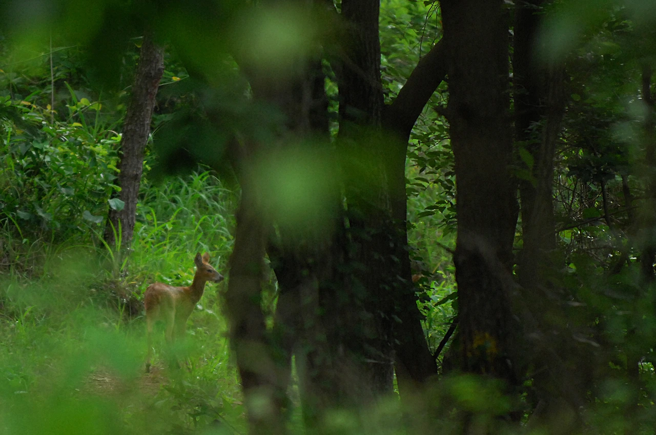 산허리, 아니 섬의 허리를 따라 위태롭게 이어지던 길은 다시금 숲길로 들어선다. 이번에는 제법 깊숙이 파고든다. 거리상으로야 몇 미터에 불과하겠지만 파노라마처럼 펼쳐지던 해안 풍경이 한순간에 사라져버린 숲길에선 불 꺼진 극장 안으로 들어선 것처럼 답답함이 느껴진다. 그래도 위안이라면 마실 나온 듯 어슬렁거리던 고라니와 마주할 수 있는 기회를 얻었다는 것. 사실 숲길을 거닐다 보면 노루나 고라니를 가끔 보게 되는데, 대부분 그것으로 상황이 종료되는 경우가 많다. 워낙 예민한 녀석들이다 보니 사진 촬영은 고사하고 바스락 거리는 작은 발자국 소리에도 순식간에 자취를 감춰버리기 때문이다. 이번에도 그랬다. 녀석과 처음 눈이 마주쳤을 때, 그것으로 상황 끝이려니 했다. 한데 녀석은 조금 달랐다. 서로의 눈이 마주쳤는데도, 찰칵찰칵 급하게 셔터를 눌러대는데도 무덤덤하게 제 갈 길을 갈 뿐이다. 그것도 불과 10여 m 앞에서. 녀석이 모퉁이를 돌아가면 발걸음을 옮기고, 녀석과 눈이 마주치면 멈춰 서기를 몇 번. 그렇게 녀석과 가슴 졸이는 숨바꼭질을 하는 사이 길이 갑자기 네 갈래로 갈렸고, 길이 갈리면서 녀석의 흔적도 사라져 버렸다.