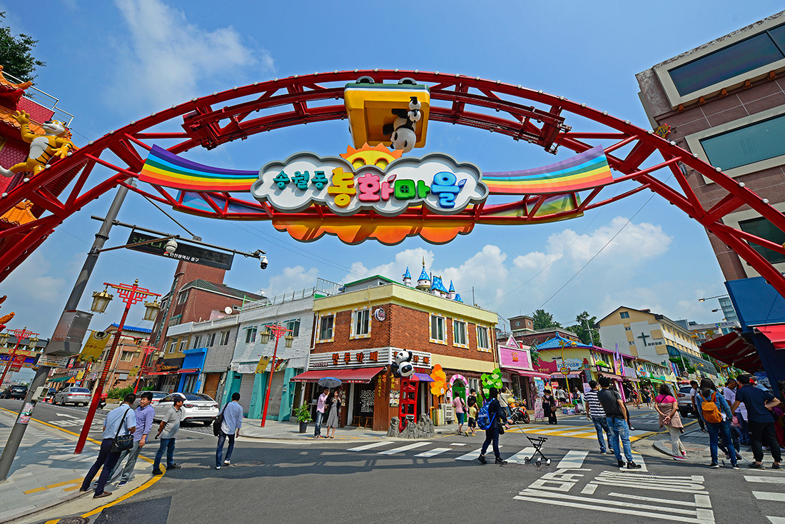 지하철 1호선 인천역에서 제물량로를 따라 300m 정도 길을 거슬러 오르면 송월동 동화마을을 알리는 큼직한 아치형 조형물이 반긴다. 차이나타운 북쪽 끝과 맞닿은 곳이다. 세계명작동화를 테마로 조성한 송월동 동화마을에는 동화마을길과 동화마을안길 구석구석으로 도로시길, 빨간모자길, 바다나라길, 전래동화길 등 11개 테마길이 마련됐다.