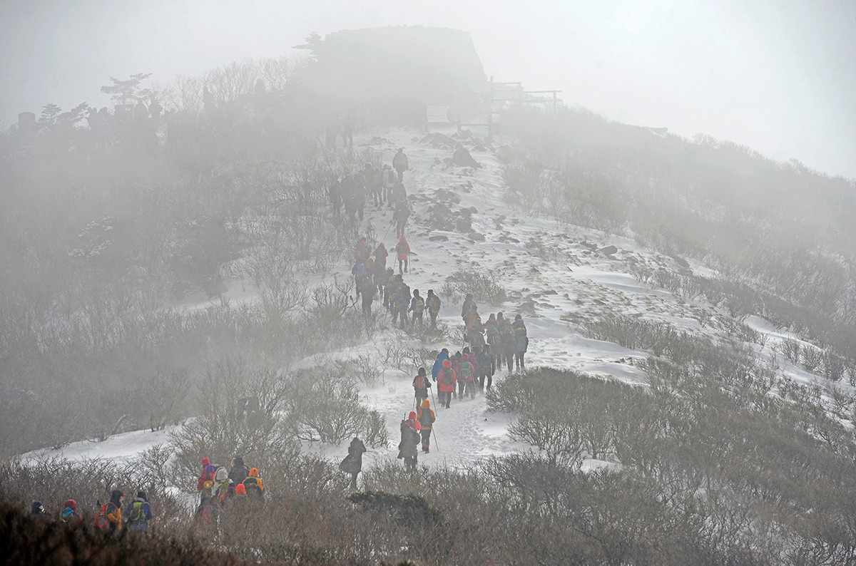 눈꽃산행 하면 머릿속에 떠오르는 산이 몇 있다. 무주의 덕유산(1614m), 제주의 한라산(1950m) 그리고 태백의 태백산(1567m)이 대표적이다. 그 가운데서도 태백산에 유독 마음이 끌리는 건 해발 1500m가 넘는 고산임에도 큰 힘 들이지 않고 산정에 오를 수 있기 때문이다. 요즘 흔한 말로 ‘가성비’가 좋다는 말씀. 산머리에 쉽게 올라서는 산으로는 곤돌라를 타고 산정 턱밑까지 갈 수 있는 덕유산이 한 수 위지만 스틱 쥐고 등산화 챙겨 신은 입장에서 그건 좀 아닌 것 같고, 서울에서 차로 4시간 이상을 부지런히 달려야 닿을 수 있는 먼 곳이지만 그래도 바다 건너 제주까지 가야 만날 수 있는 한라산보다는 가까우니, 태백산은 이래저래 눈꽃산행지로 최적의 조건을 갖췄다. 무엇보다 태백은 매년 눈꽃축제가 열리는 눈의 고장이 아니던가.