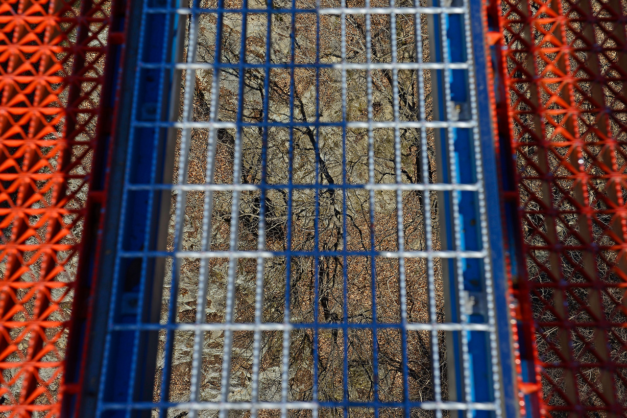 소금산 출렁다리의 진정한 매력은 놀이기구 못지않은 짜릿한 스릴을 맛볼 수 있다는 점이다. 비밀은 바닥. 소금산 출렁다리는 200m에 이르는 바닥 전체에 격자형 강철소재(스틸 그레이팅)를 깔았다.