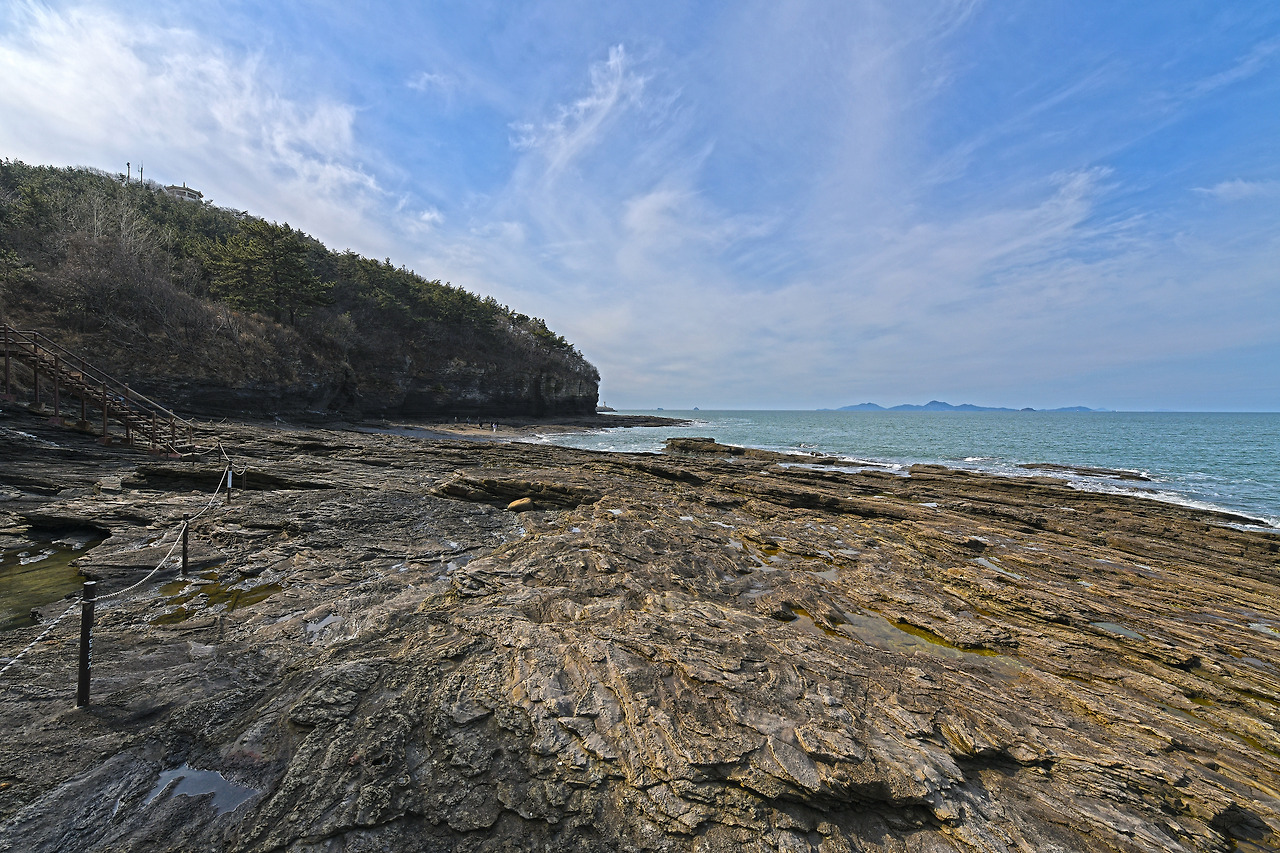 채석강은 2017년 서해안권 국가지질공원으로 인증 받은 부안의 랜드마크다. 격포해변과 격포항 사이에 자리한 채석강은 수천만 년 동안 켜켜이 쌓인 지층이 오랜 세월 파도에 깎이고 무너져 지금의 모습이 됐다. 수만 권의 책을 차곡차곡 쌓아올린 듯한 모습은 보는 이의 감탄을 자아내기에 부족하지 않다. 채석강 탐방은 썰물 때만 가능하다. 격포해변에서 격포방파제와 닭이봉을 거쳐 다시 격포해변으로 돌아오는 코스가 일반적이다. 격포항 일대를 조망하고 싶다면 닭이봉 정상까지만 다녀와도 좋다. 닭이봉은 격포해변에서도 오를 수 있다.