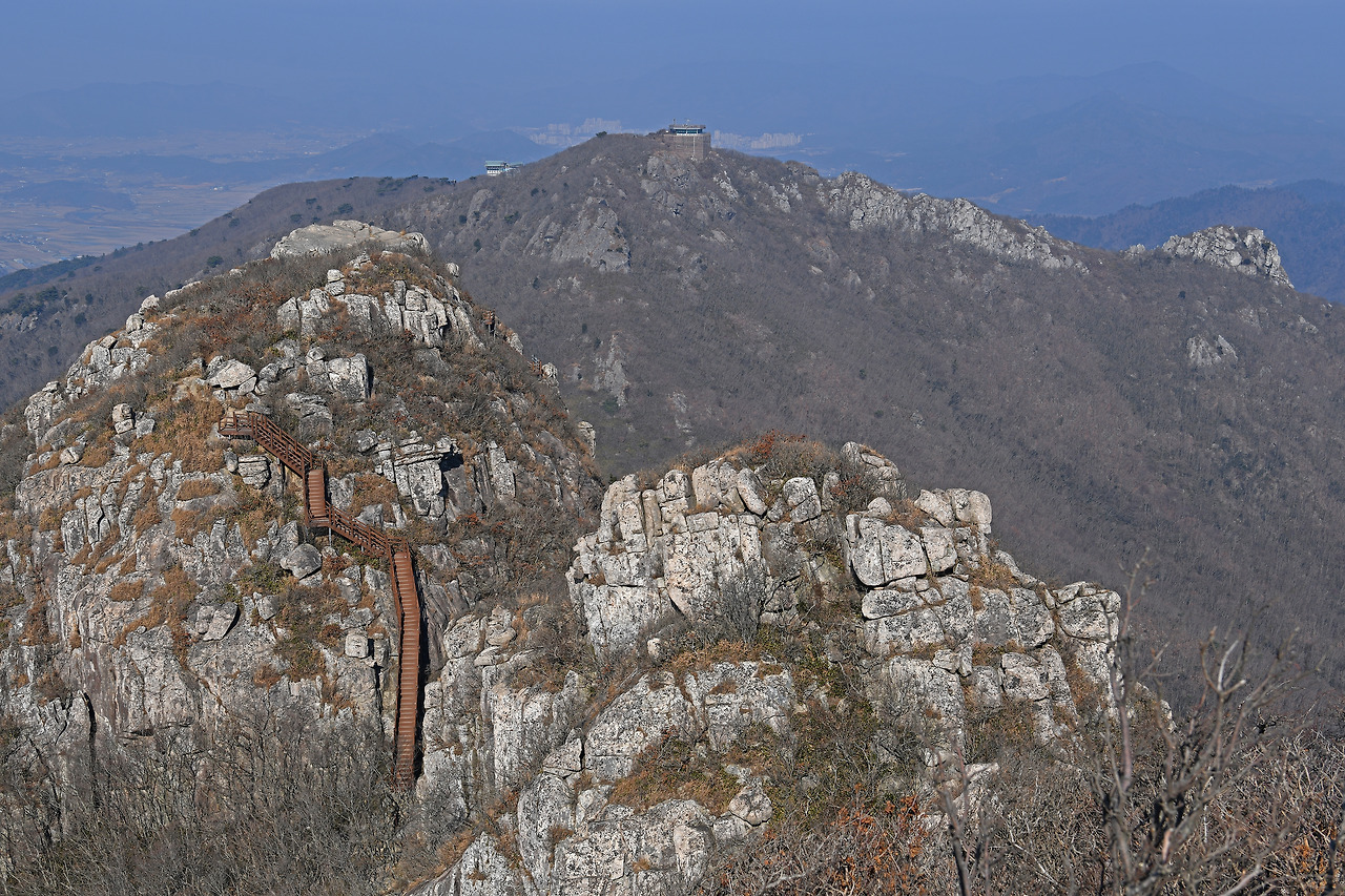 노승봉과 가련봉을 연이어 오를 때 가장 곤혹스러운 건 역시 가파른 계단이다. 여기서 팁 하나. 계단을 오를 때는 ‘타이거 스텝(tiger step)’이라 부르는 교차 걷기가 무척 유용하다. 호랑이처럼 두 발을 일차로 교차시켜 걷는 타이거 스텝은 무게중심을 잡아주고, 평소에 쓰지 않는 허벅지 바깥쪽 힘을 사용하기 때문에 체력 소모를 줄일 뿐 아니라 근육에 가해지는 부담도 덜어준다. 이때 상체를 앞으로 살짝 숙이면 더욱 효과적이다. 타이거 스텝은 계단 뿐 아니라 오르막에서는 언제든 유용하게 활용할 수 있지만 내리막에서는 자칫 중심을 잃을 수도 있으니 절대 사용 금지.